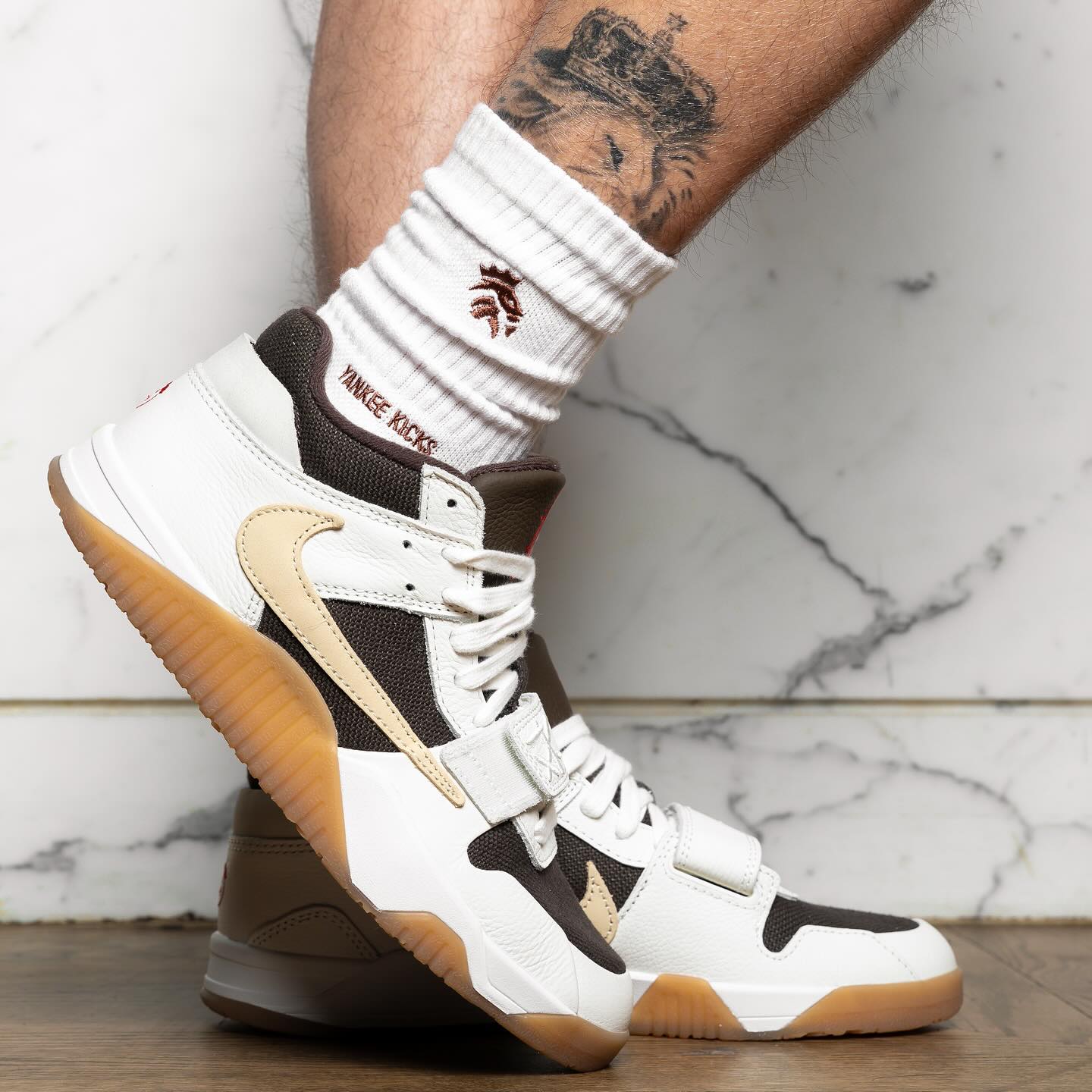 从去年五月份开始,Travis Scott 就频频上脚 Travis Scott x Jordan Cut The Check,为这款鞋预热。