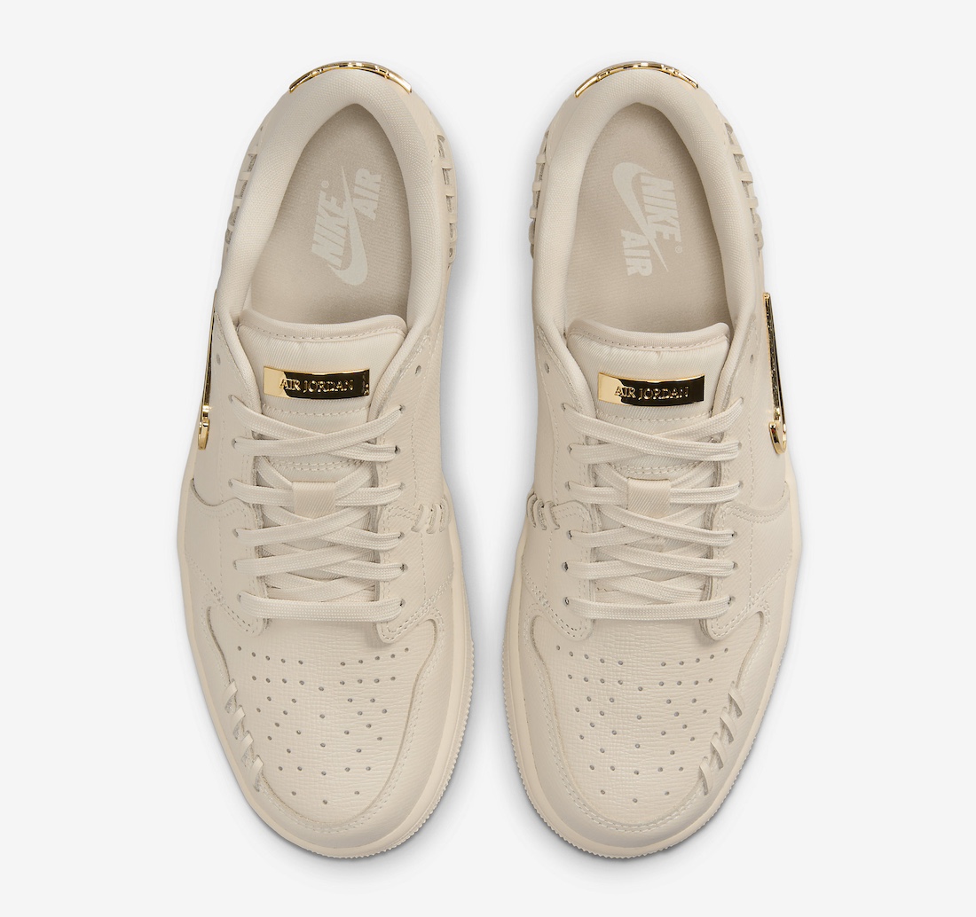 整体米色覆面,金色 Swoosh 点缀,十分百搭。