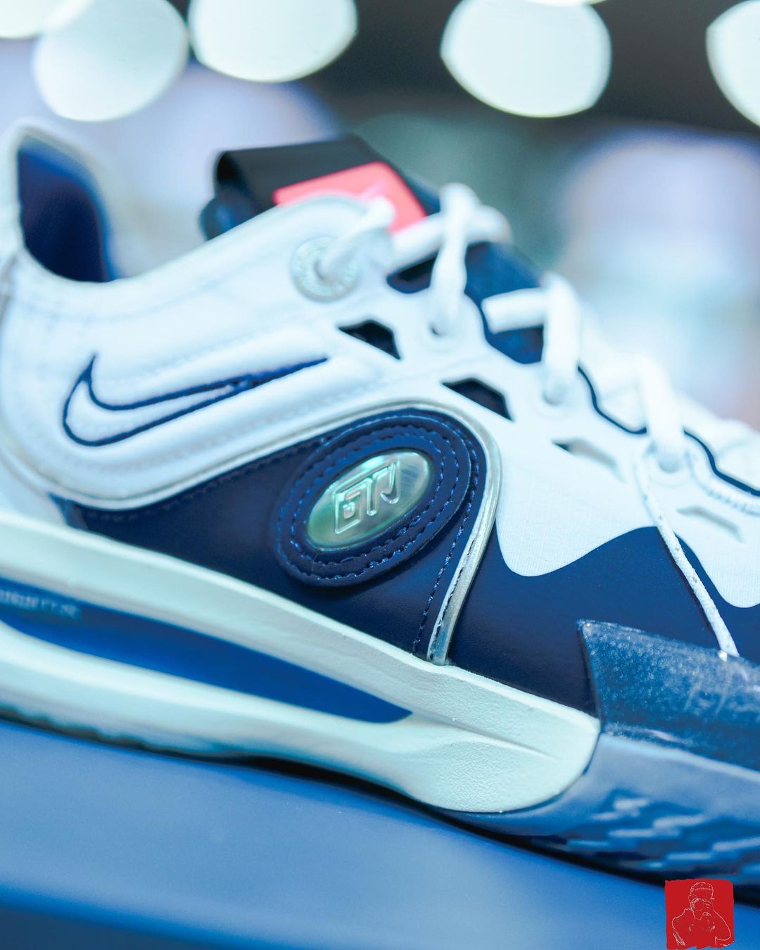 熟悉的鞋侧蓝色波浪以及弧形车线均有呈现,标志性的炫彩 TPU 则与 G.T. 融合,强调经典传承的底蕴。