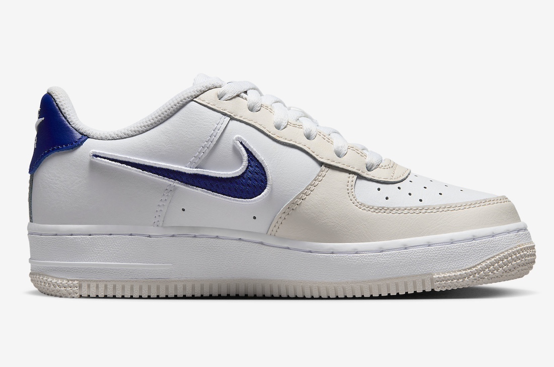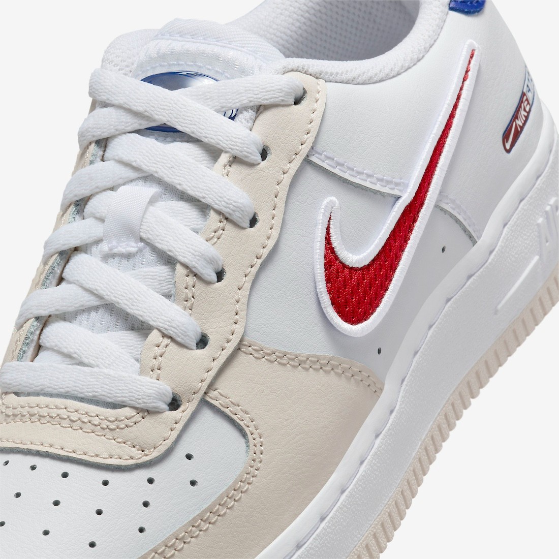 整体以 Nike Air Force 1 Low 作为设计蓝本,整体采用白色填充鞋面,辅以米白色打造鞋身框架。