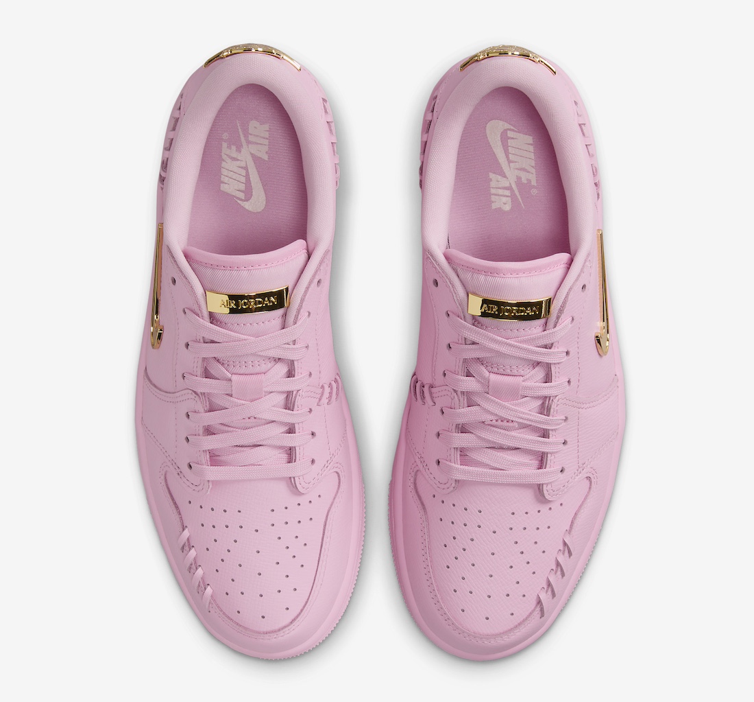 整体粉色覆面,金色 Swoosh 点缀,妥妥的芭比粉。