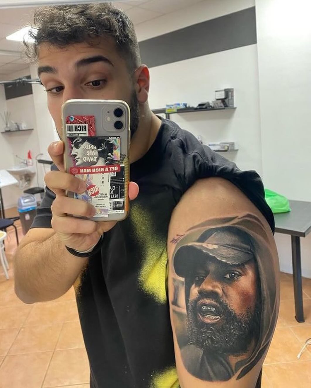 侃爷自己整活以外,他的粉丝整起活来同样够狠,大家熟知的一张侃爷头像照片,被他直接纹在了胳膊上,但该说不说还原的挺到位的。