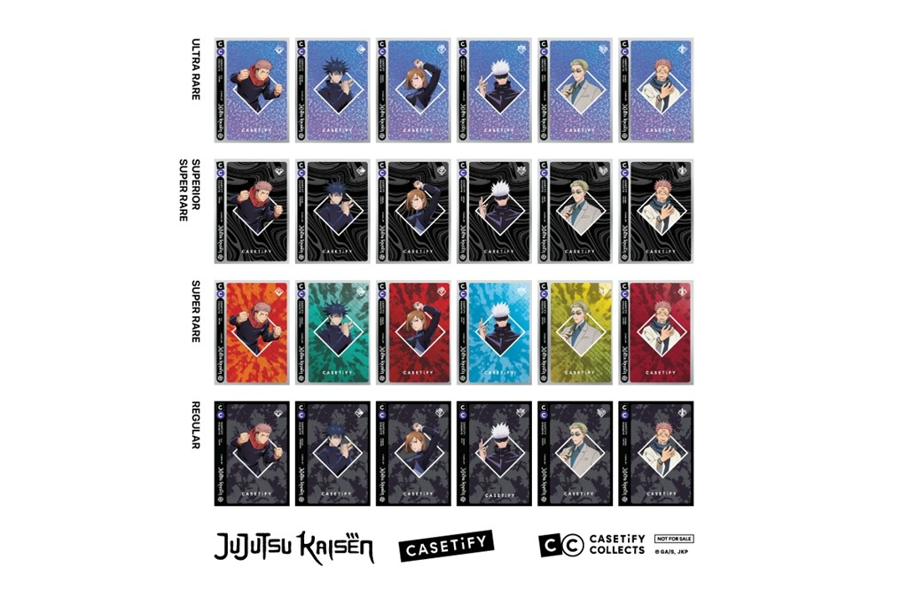 凡选购《咒术回战》 x CASETiFY 联名系列手机壳还能获取限量珍藏版卡片一张,卡上的角色稀有程度各不相同,包括虎杖悠仁、伏黑惠、钉崎野蔷薇、五条悟、七海建人和两面宿傩等。