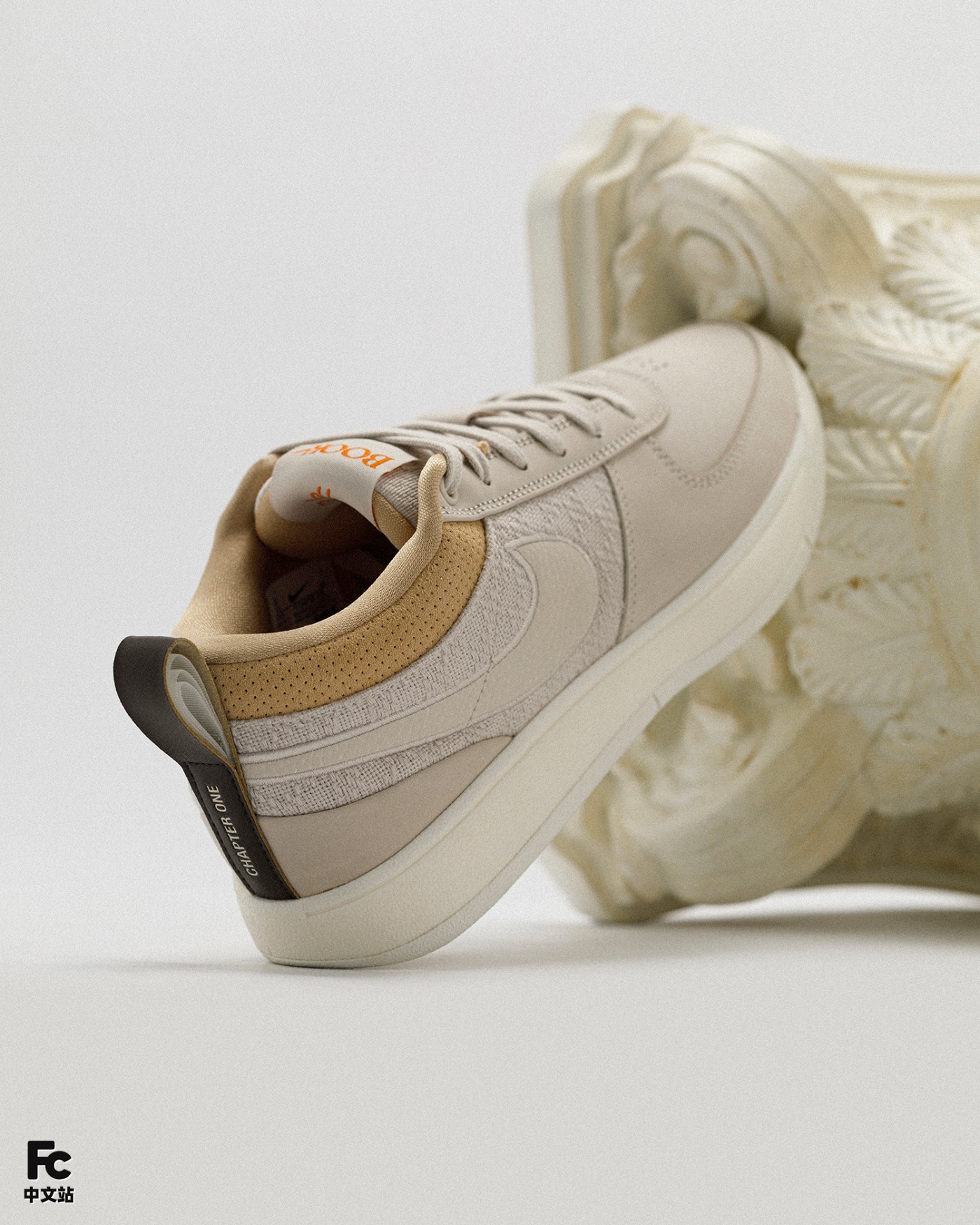 后跟鞋提巧妙的把书本的造型融入其中,同时 Chapter One 字样点出布克签名鞋系列的主题:传奇第一章。
