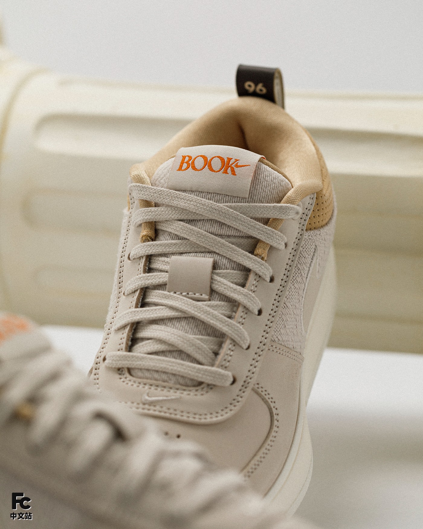 其次鞋舌部分填充同样厚实,BOOK 字样不言而喻,从正面可见的鞋提 96 字样代表了布克的出生年份 1996 年。