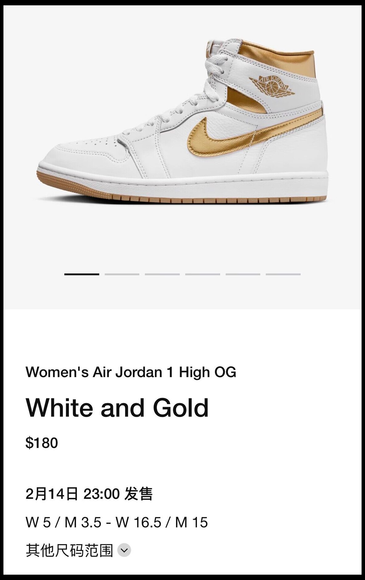整体以白色皮革材质打造鞋身,侧身 Swoosh LOGO 以及鞋帮位置点缀金色。