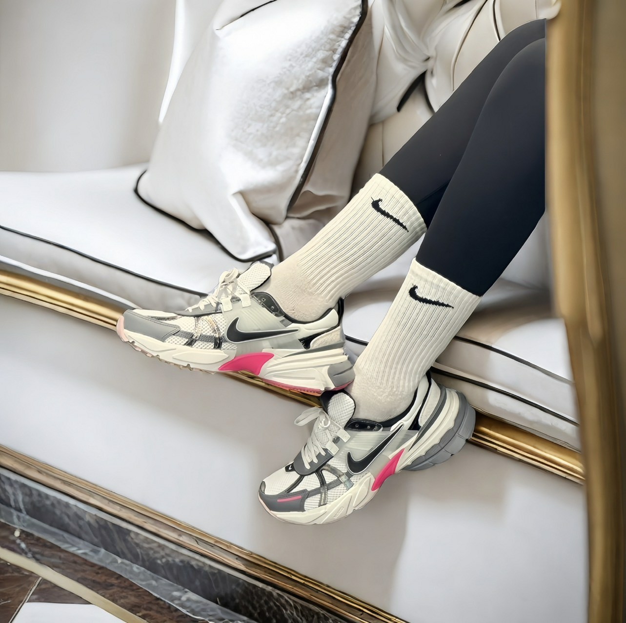 既有复古味道又有情人节氛围,说的就是这双 V2K 了,从上脚效果来看更适合小姐姐日常搭配。