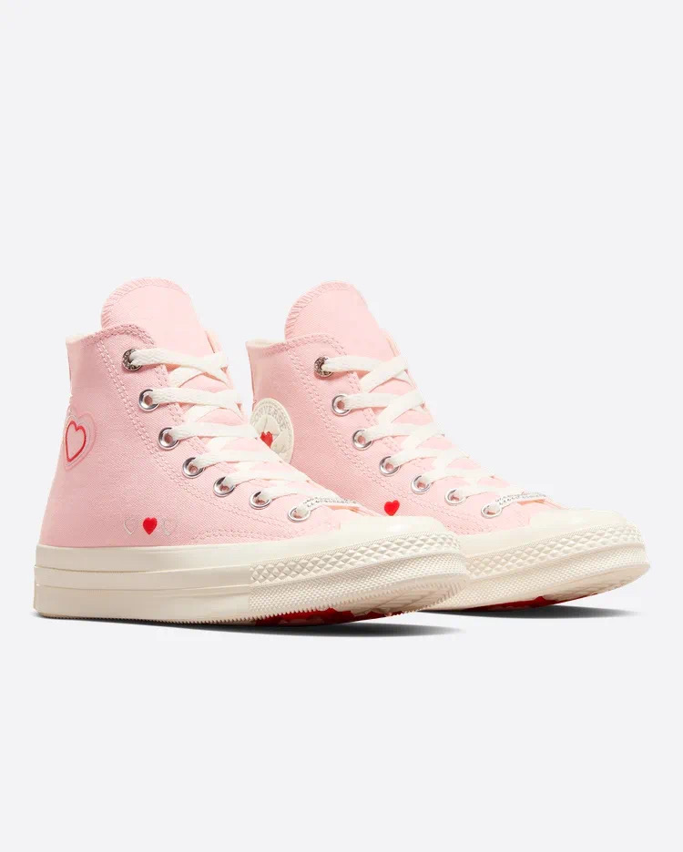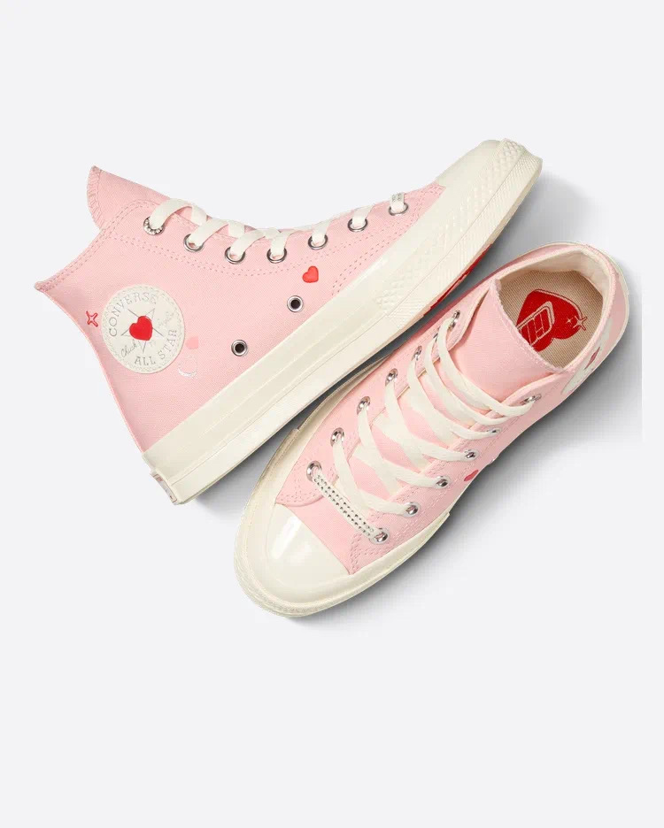 另一双情人节主题 1970S 里里外外都是细节,不仅鞋侧贴片点缀有爱心图案,外底同样有粉红双色组成的心形。