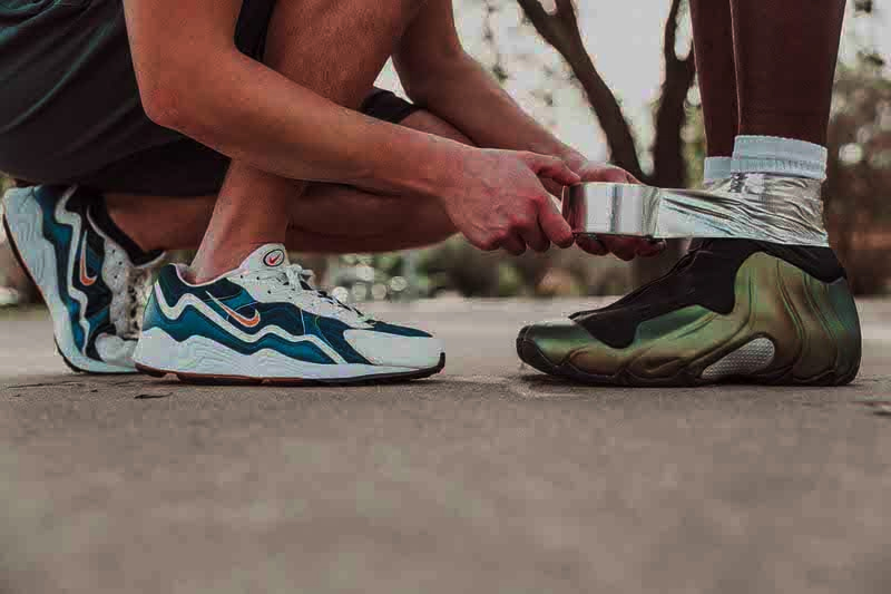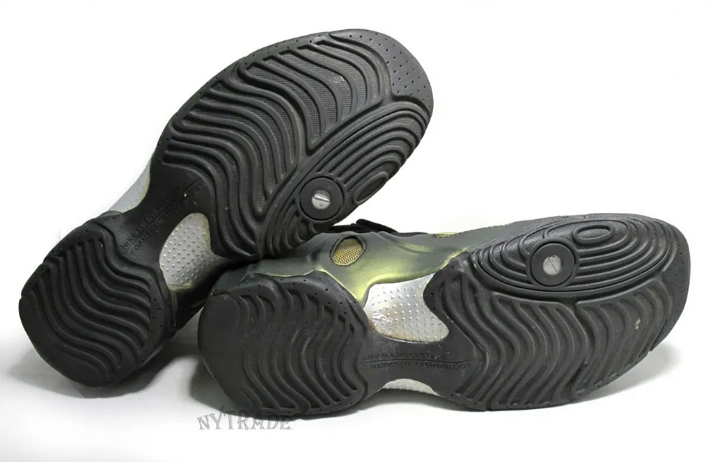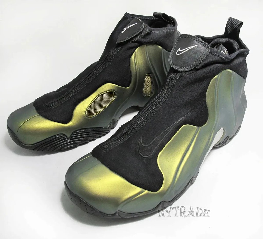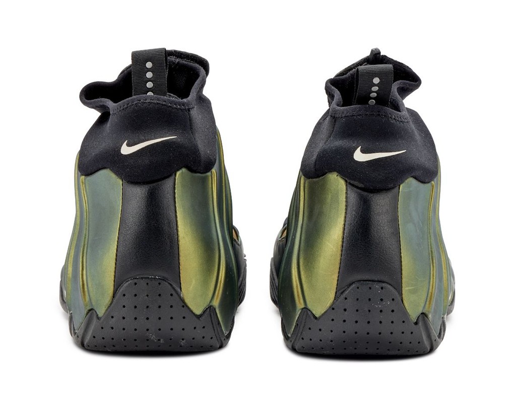 金属金色在不同角度下透出幽幽的绿光,再结合时至今日都科幻感十足的 Foamposite 外壳,一下把人拉回 2000 年左右那个时代。