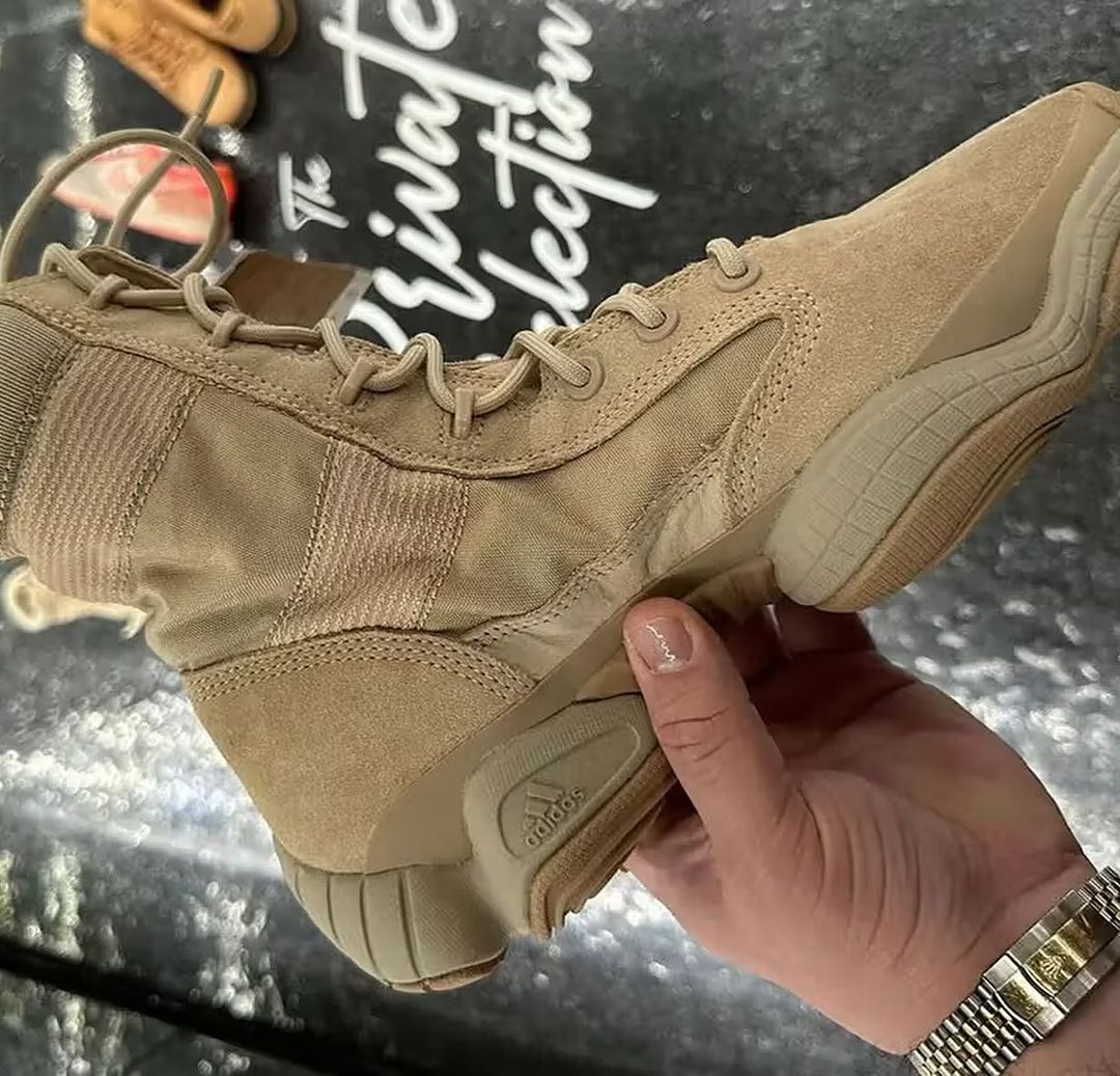 只能说这双全新 Yeezy 500 Hi 更偏向于沙漠军靴的感觉,尤其是配合上此次曝光的沙色配色,熟悉的大地色系回来了。