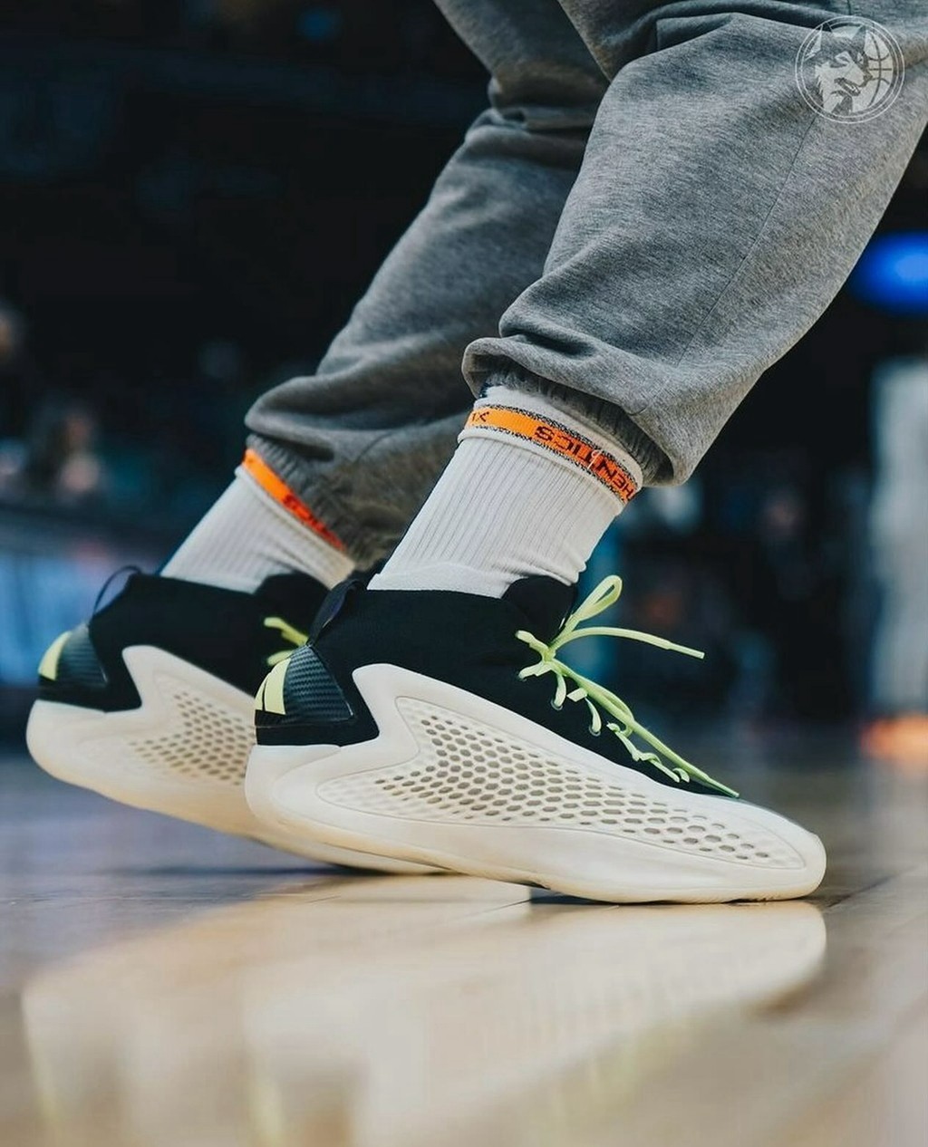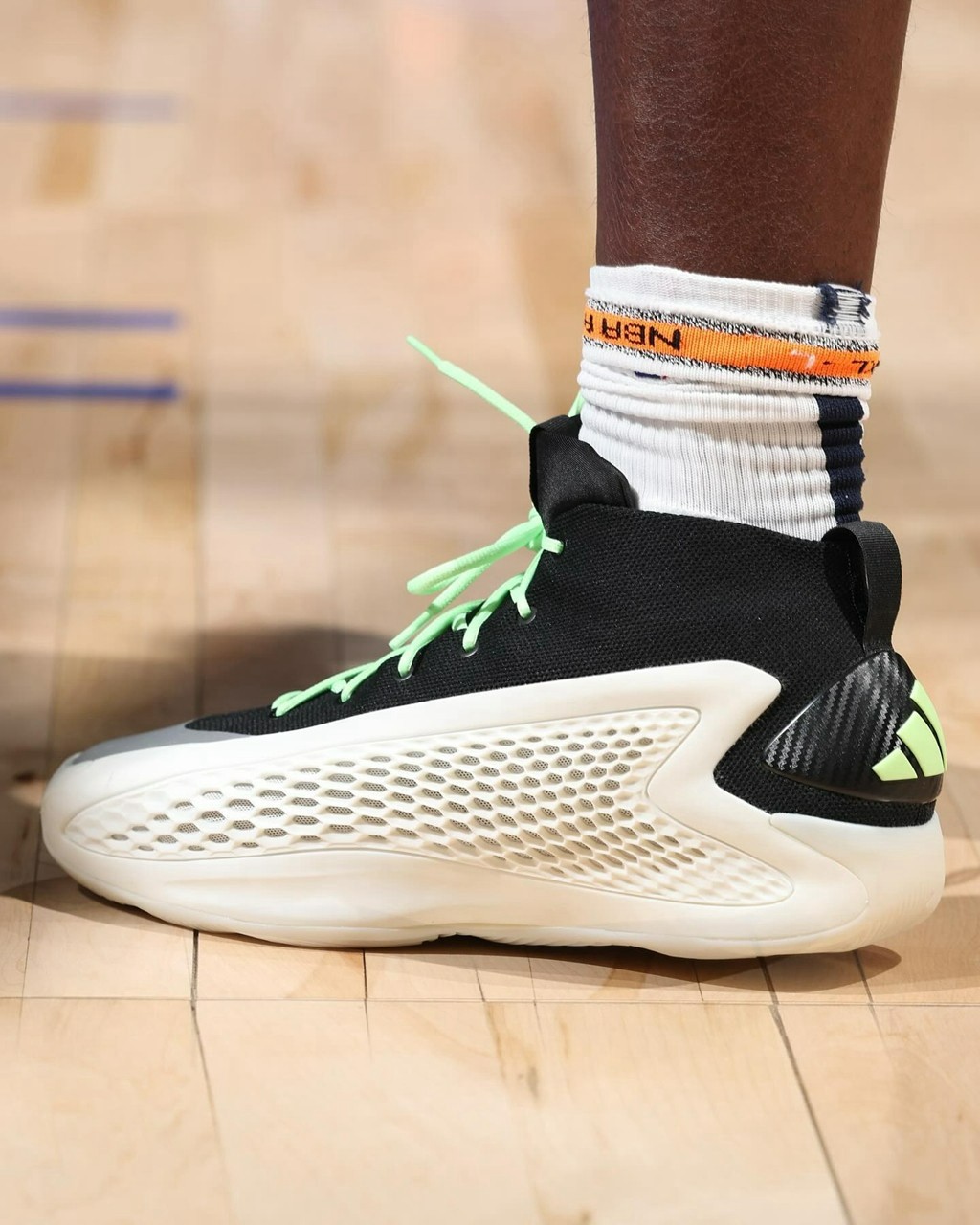 搭配方面,可以学习爱德华兹本人的做法,换成后跟 Logo 相同的淡绿色,也别有一番滋味。