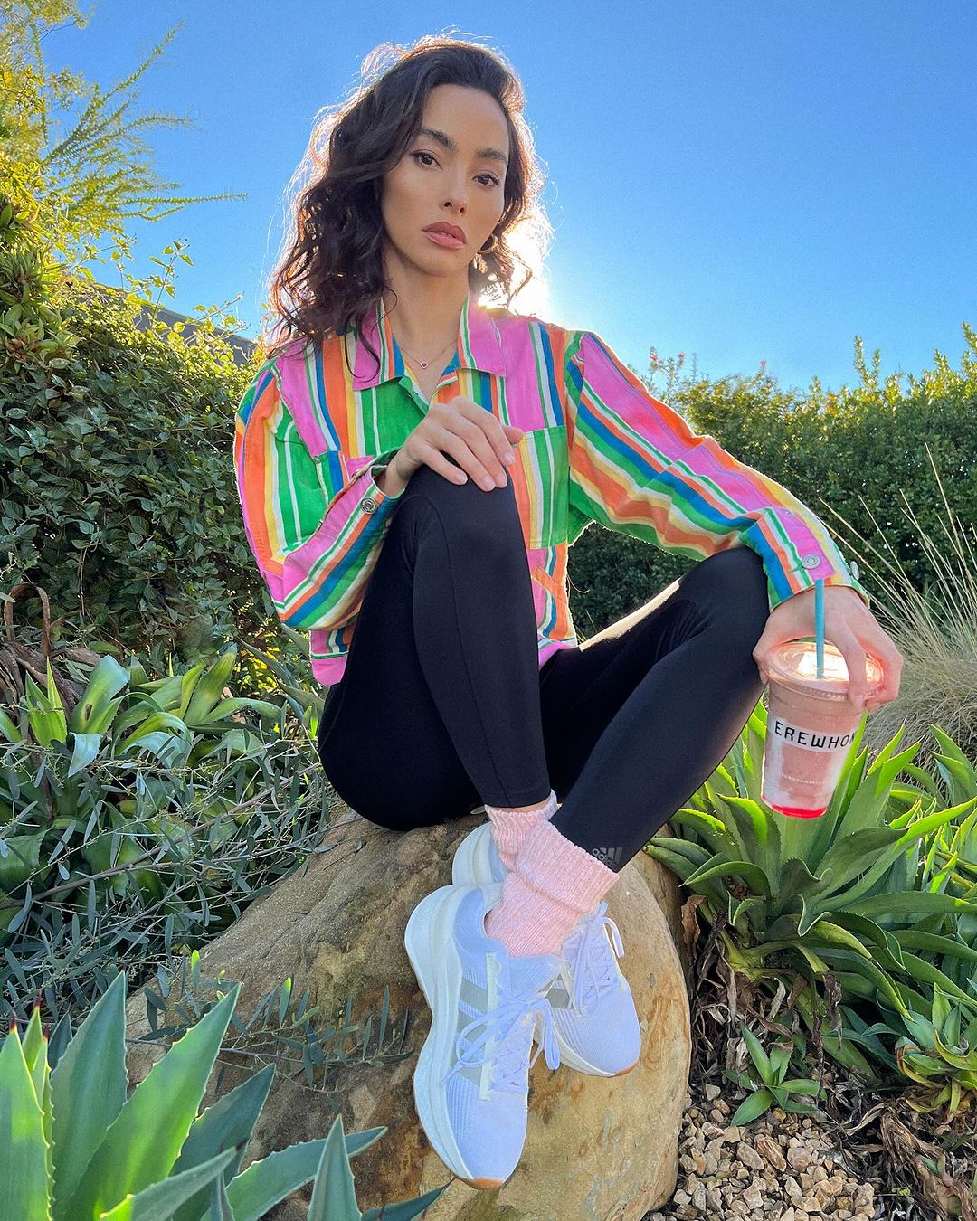 作为穿搭博主,出街造型肯定是信手拈来,一身运动套装搭了双 Salomon ACS Pro,瞬间化身邻家小妹。
