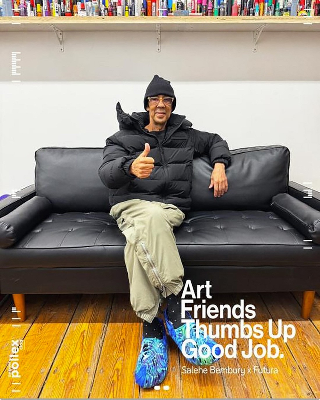 OG 级别的街头涂鸦艺术家 Futura 也是诸多天价球鞋的缔造者,此番他也加入了 Salehe Bembury 与 Crocs 的合作阵营,建立了一个三方合作的 Art Friends Thumbs Up Good Job 项目。