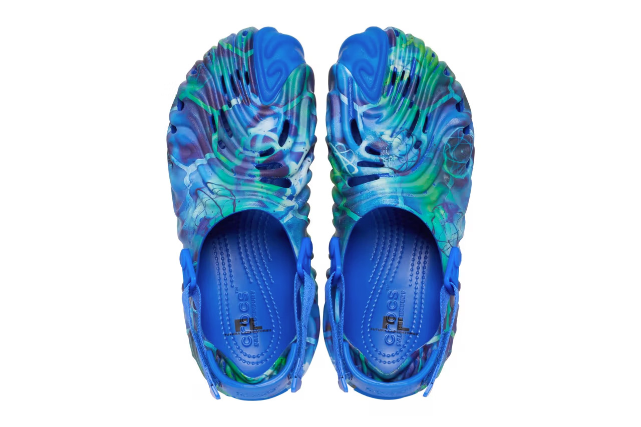 同时打造了一个三方联名的新作品,这一 Salehe Bembury x Futura x Crocs Pollex 仅仅限量 1000 双,在鞋面上呈现了 Futura 的经典纹理图案。
