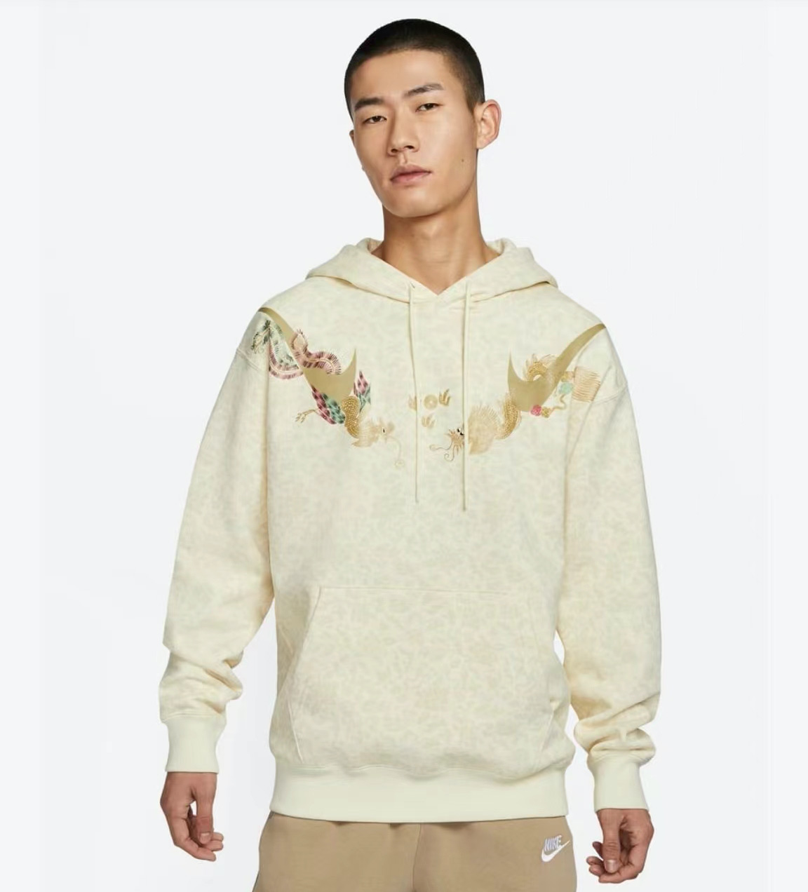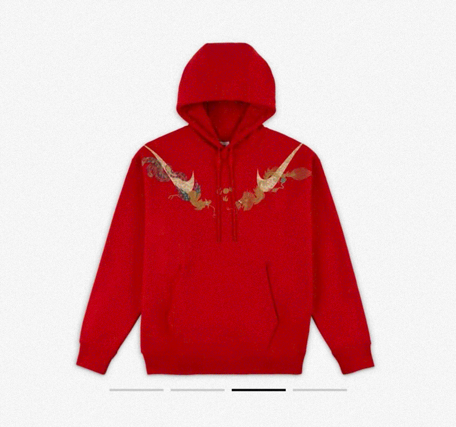 而同时要登场的还有配套服饰,两款配色的「龙凤双喜」帽衫。