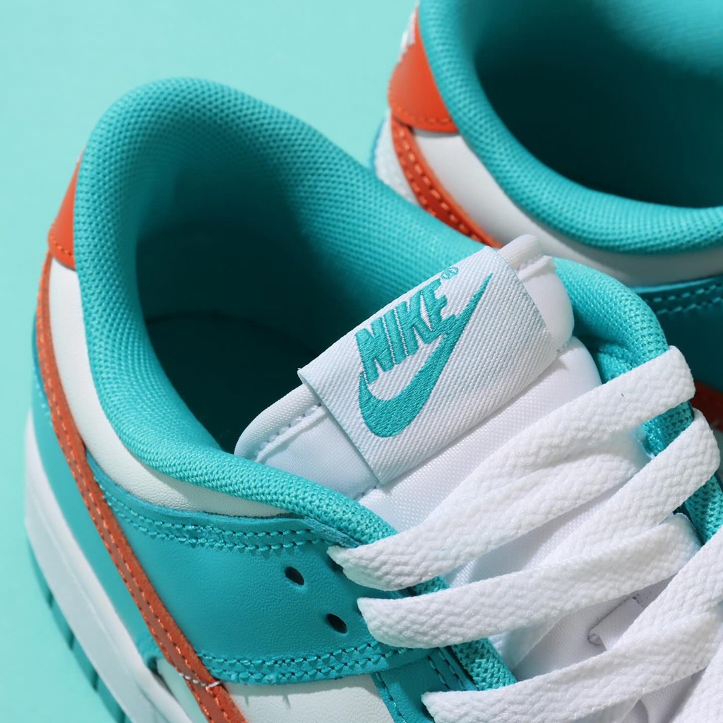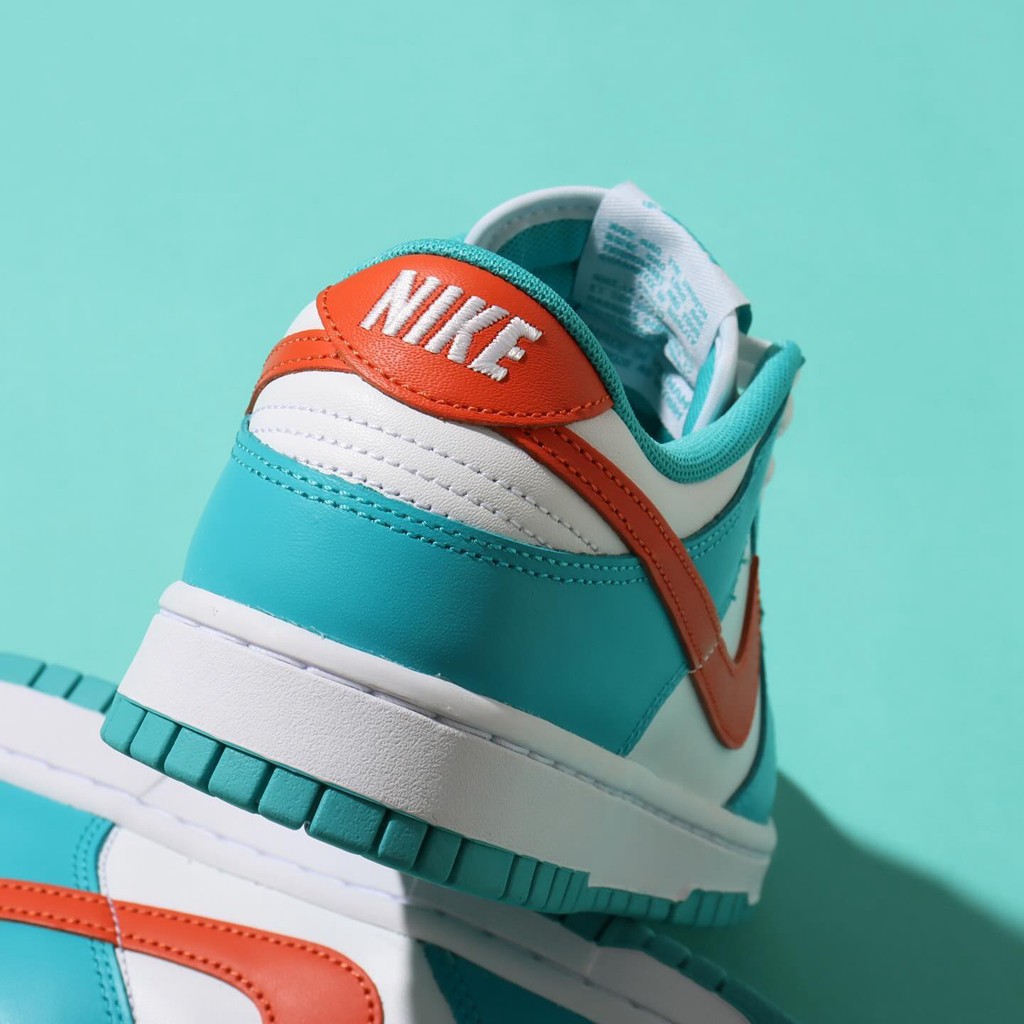 本月重磅新鞋真不少,但也要适时将眼光转向一些普款球鞋,说不定就有惊喜发现。 比如近期登场的 Nike Dunk Low “迈阿密海豚”,整体颜值就相当亮眼。 湖水绿鞋面搭配橙色 Swoosh,充分释放了专属于南海岸的夏日氛围。 虽然冬季还没过去,但提前为夏天准备球鞋也不会有任何问题。 目前这双鞋已经正式登场,不知道这双是否会是你的心头好呢? Pic via:atmos_tokyo