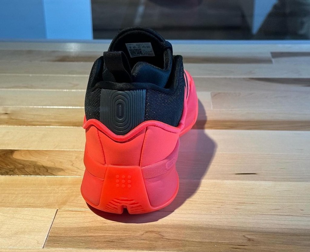不同于传统的大红,这次红色偏向 “红外线” 一些,自带略微的荧光感,与鞋款整体的科幻基调非常契合,颜值这块稳稳拿捏。