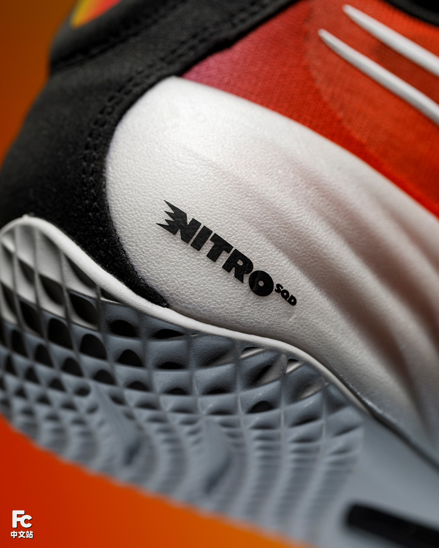 从拆解图可以看出,中底中心位置,采用更为柔软的 NITRO 材料提升缓震。