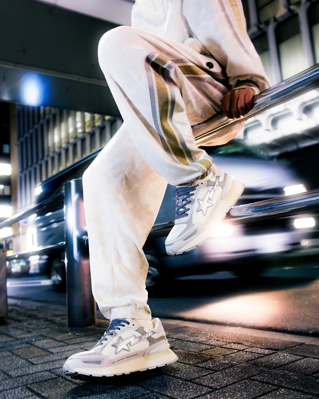 近日,BAPE® 推出全新鞋型 CROSS STA。 本次共带来白、灰蓝以及纯黑三款配色,大家更喜欢哪款呢? 整体采用多层网眼面料及牛巴革拼接塑造,并带有 3M 反光材质,质感不俗。 鞋侧面的标志性 STA 徽标以 TPU 材质重塑,营造未来科技感。 最后加厚衬垫中底与高性能 VIBRAM 橡胶鞋底,带来持久舒适的穿着体验。 据悉,全新 BAPE® CROSS STA 将于 2 月 24 日登场,定价为 ¥1699 元。