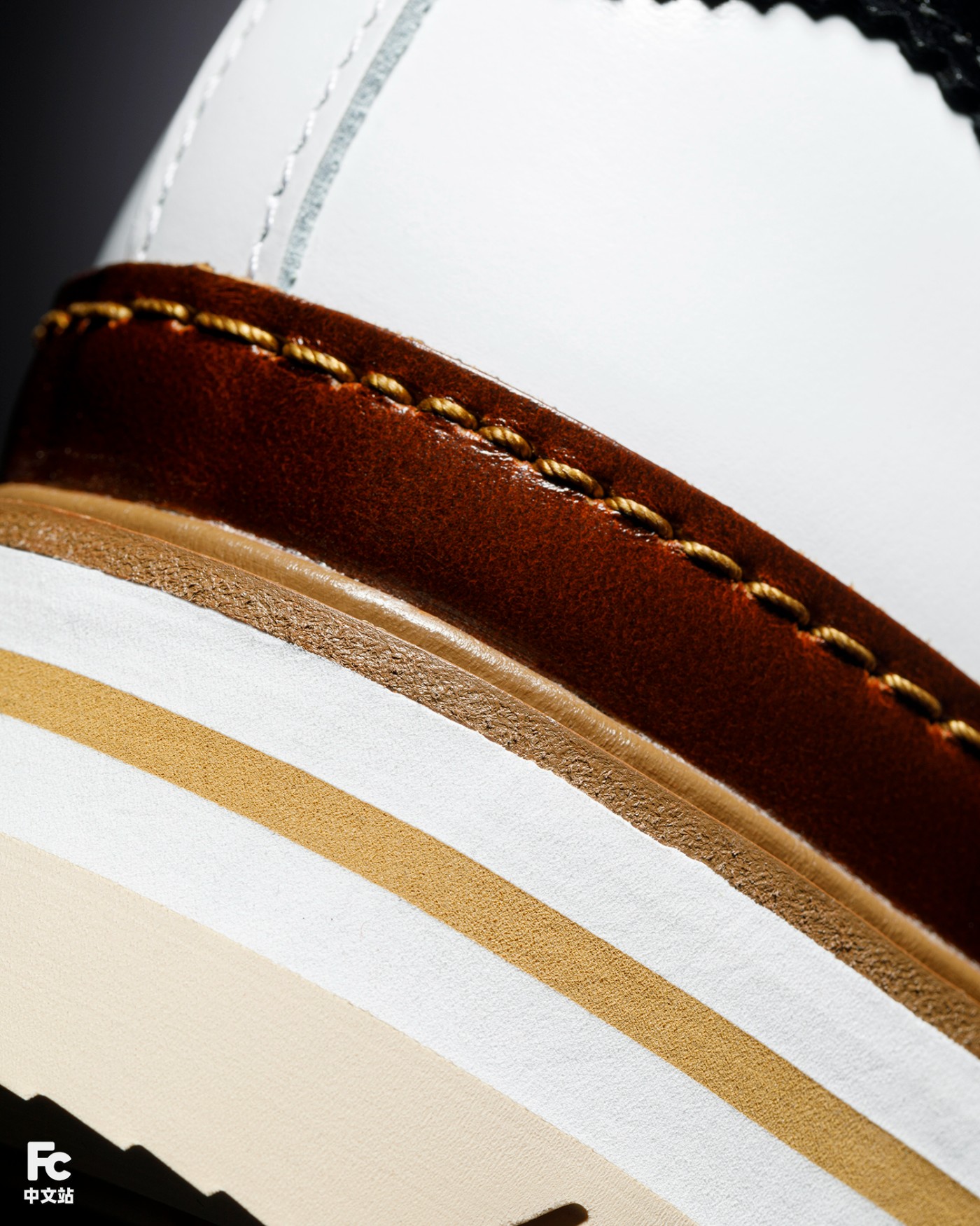 鞋身、鞋底的连接部分有深、浅两色皮革覆盖,独特的木制色系十分契合整双鞋的氛围,算是一个加分项。
