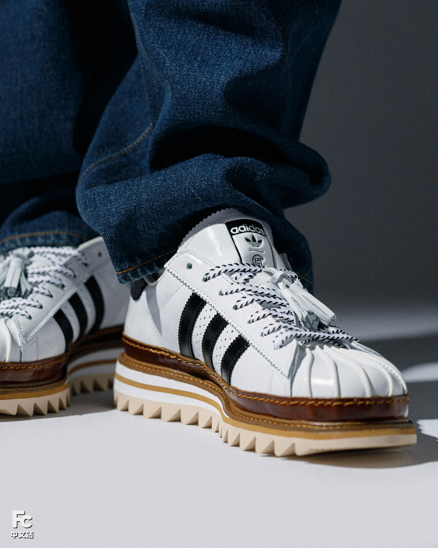 不仅又一次用上了 adidas Originals 最为经典的 SUPERSTAR 鞋型,单从这个锯齿外底来看,也能感受到阿迪给予冠希的创作权限。