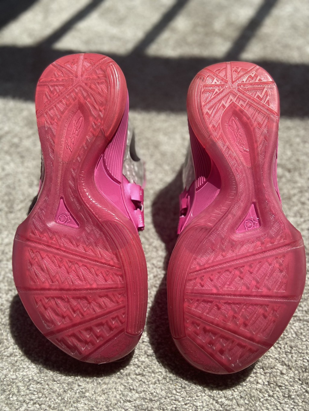 配色灵感相信大家已经再熟悉不过,就是在纪念杜兰特的阿姨 Pearl,同时也向那些与乳腺癌作斗争的女性们致敬。