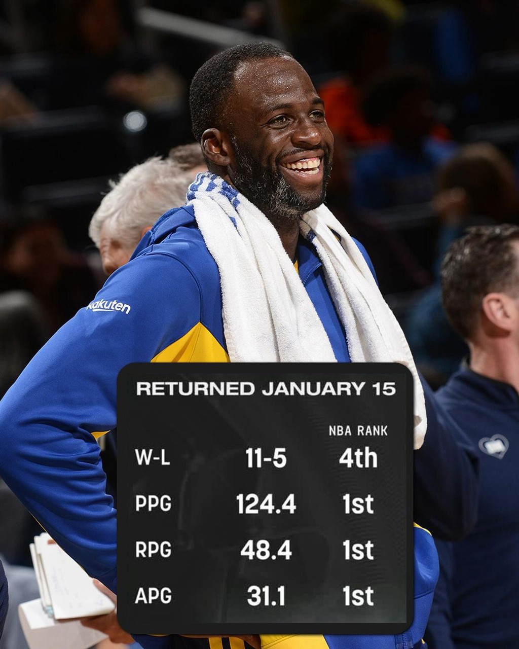 勇士在格林复出后一直在努力 “北伐”,成功杀入附加赛区,而剩下三支队伍则基本都在 50% 左右的胜率挣扎,没什么起色。
