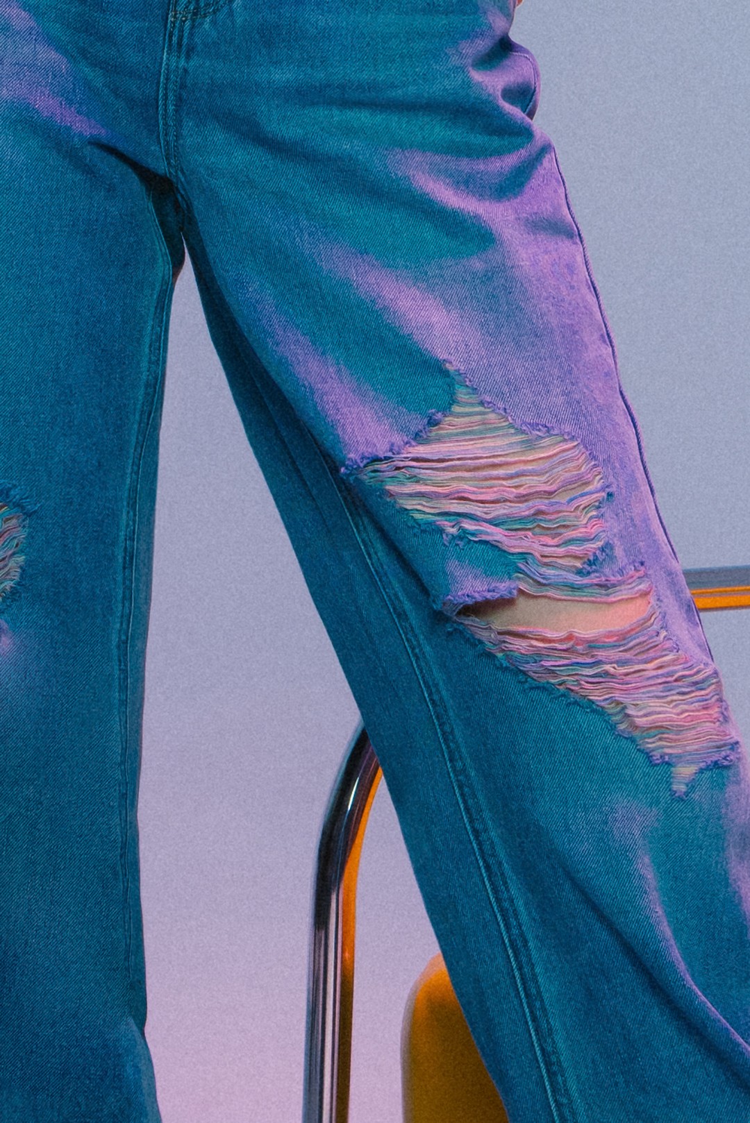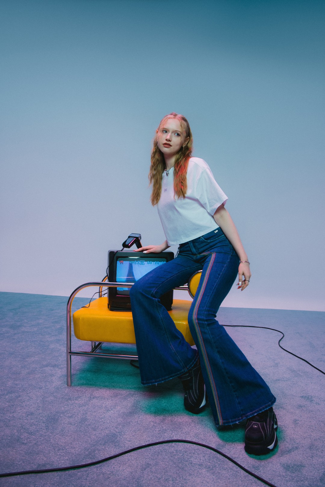 简单穿上印有 Make Yourself Proud 标语的牛仔 Oversize 背心,本身自带的帅气感,再搭配以彩虹纱线造成的特殊磨破效果, 配上美颜牛仔系列的 411 高腰舒适锥型牛仔裤,在不经意中呈现出女生刚柔并重的独特魅力。