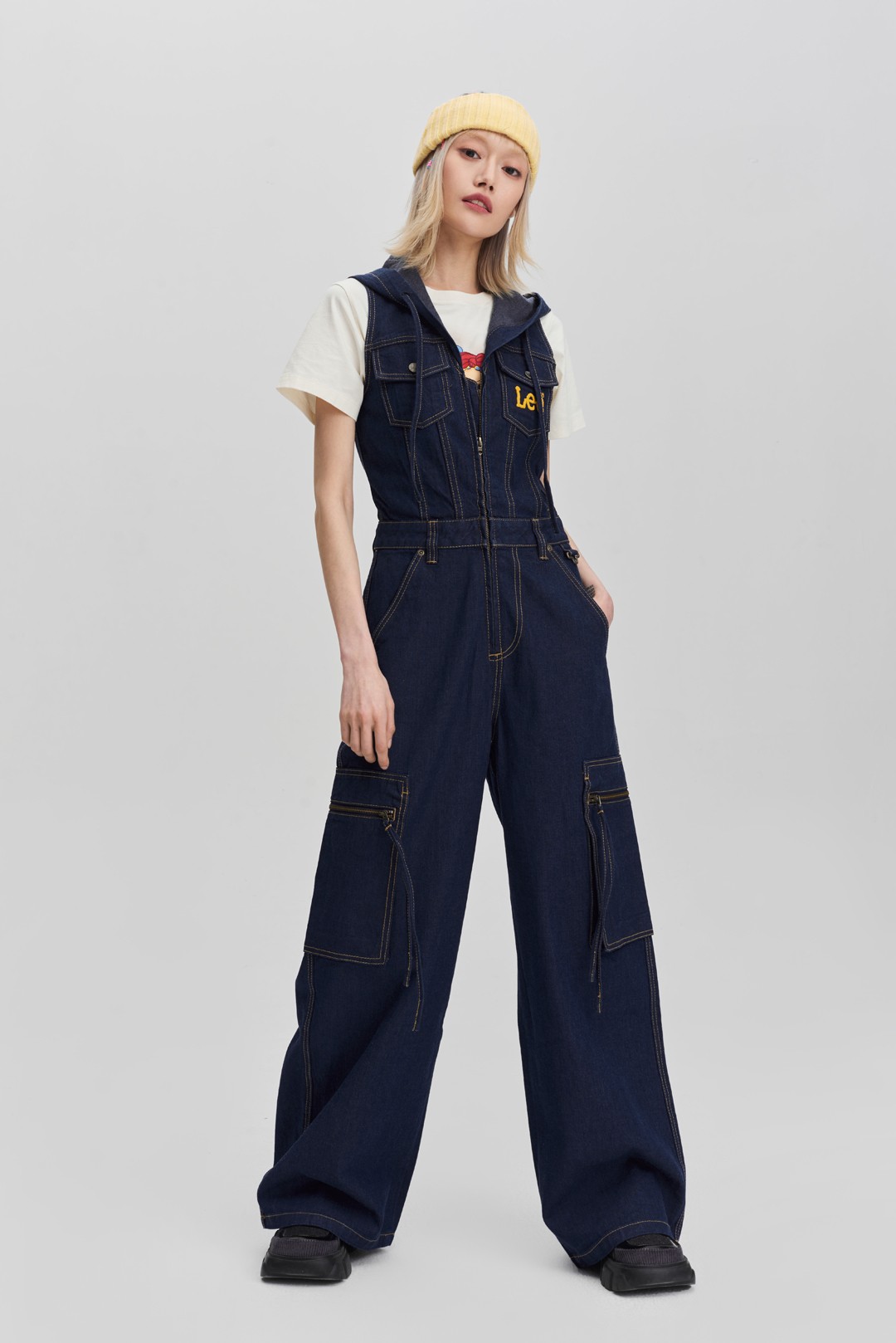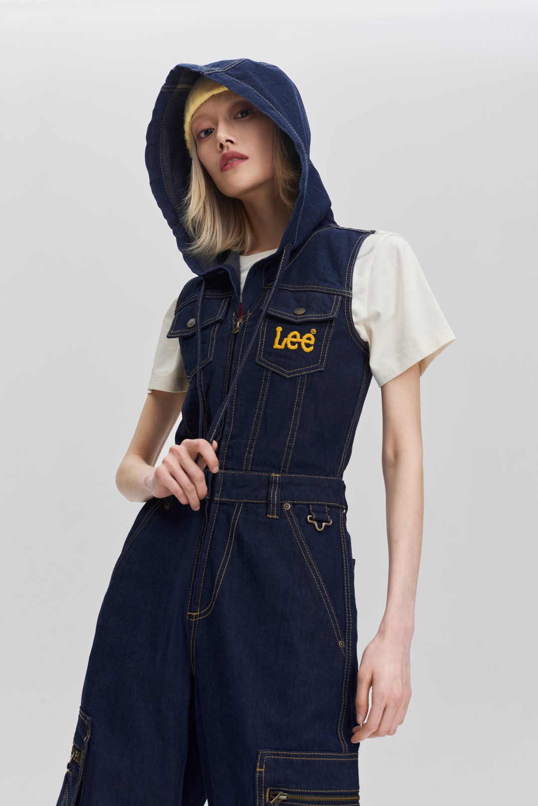Buddy Angel 的形象加上 Lee 出色的工艺,将创意融合于整个联名,同时通过贴布绣的工艺呈现延伸至整个系列,其间使用明亮的黄蓝色扎染、延用 Lee 经典牛仔连帽连体裤,每件单品都展现女性魅力。