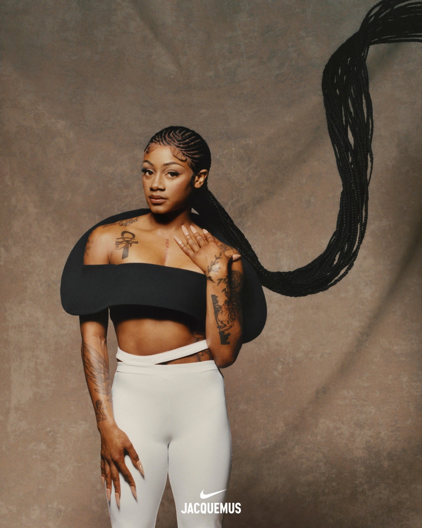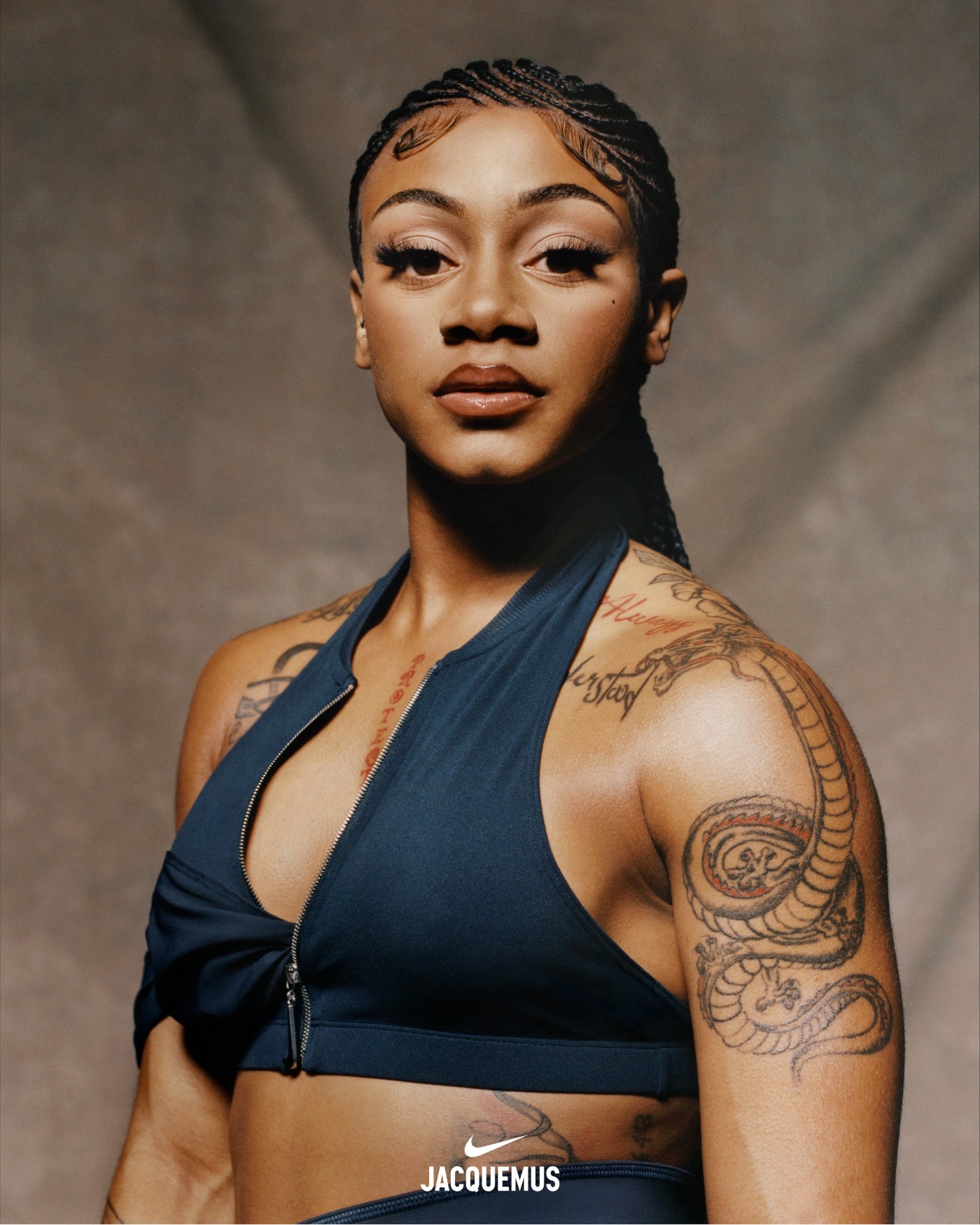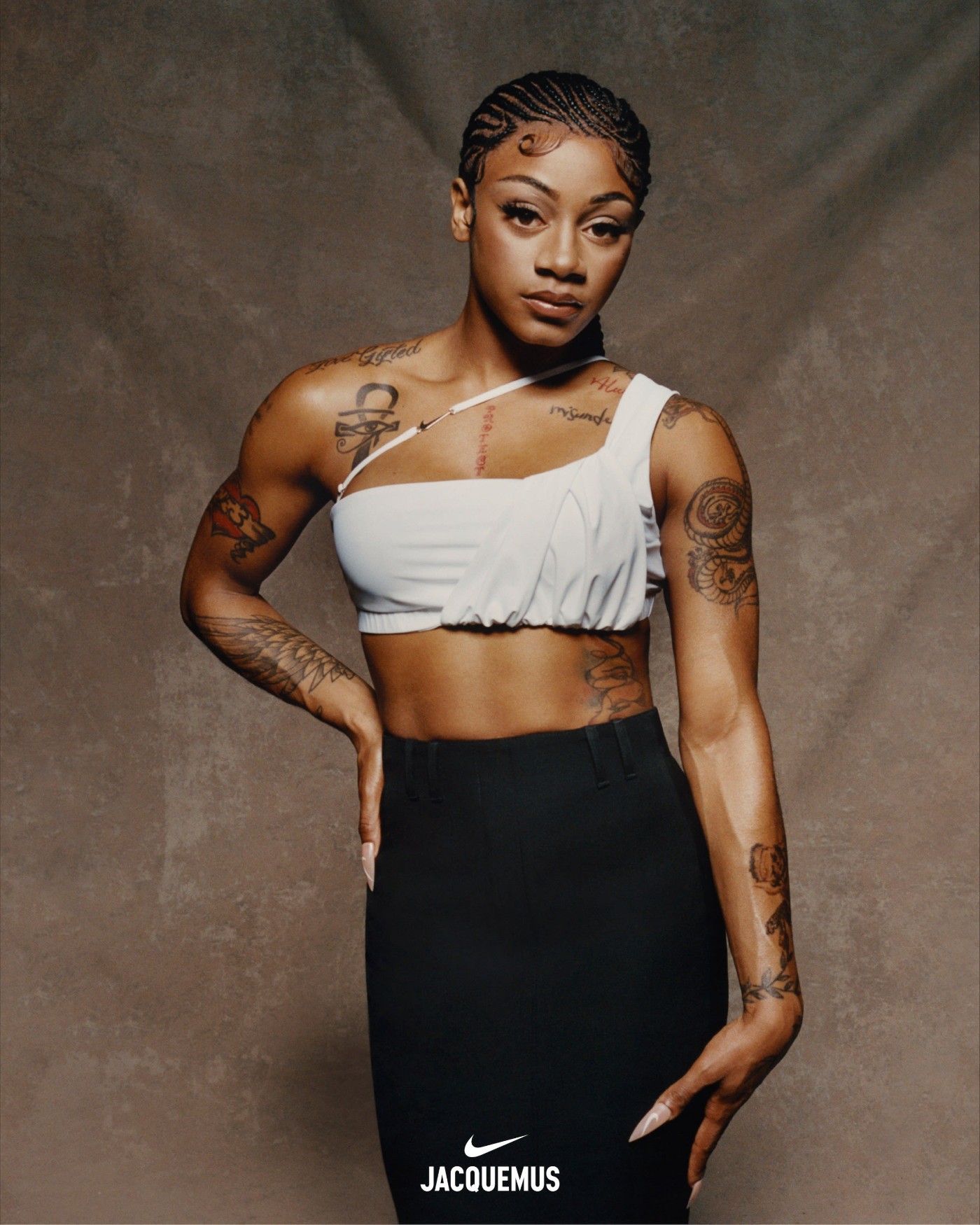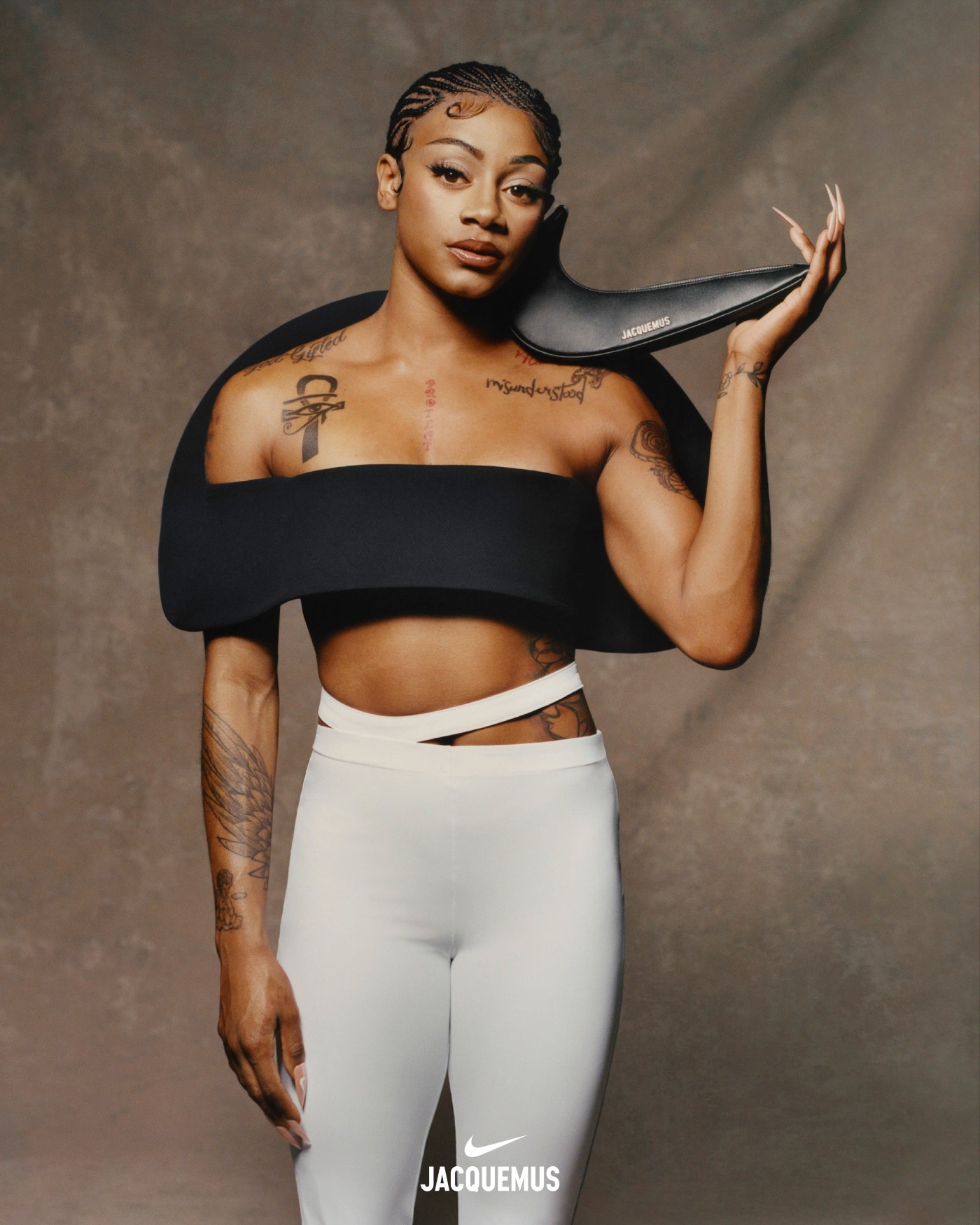 在官方型录中,Nike 运动员、时尚偶像、2024 年奥运会热门选手沙卡里·理查森(Sha’Carri Richardson)亲自演绎 Nike x Jacquemus 2024 春季系列。