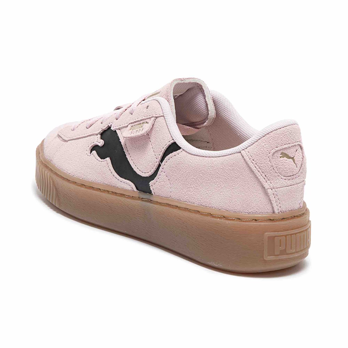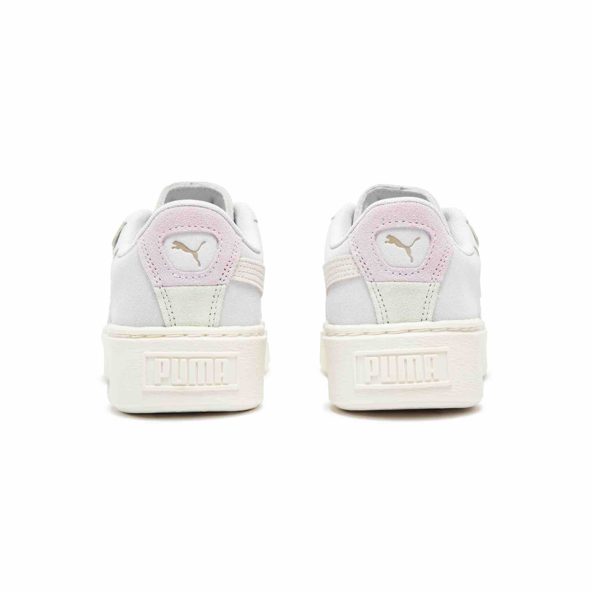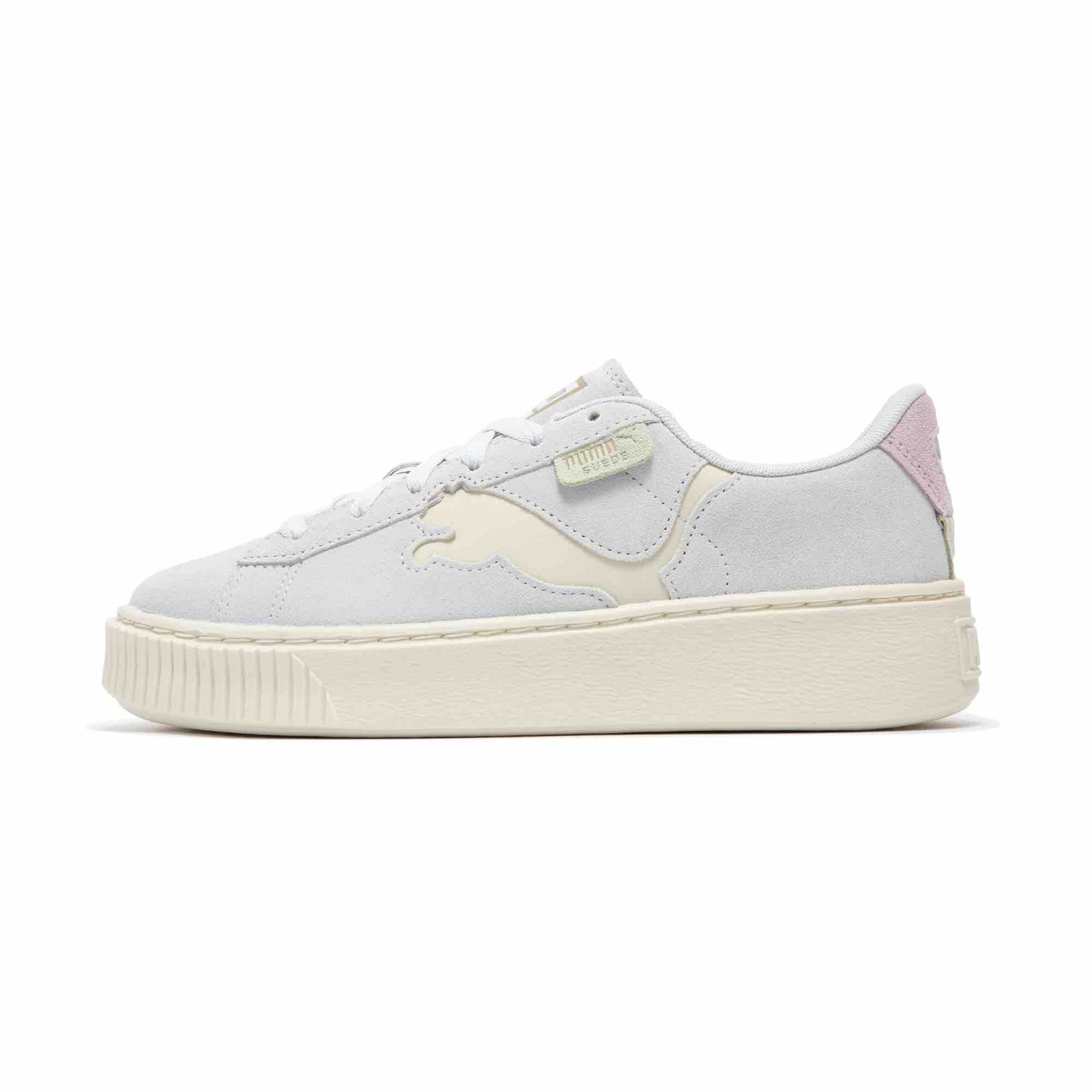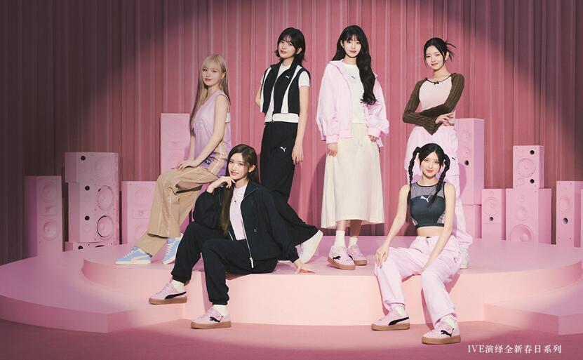 韩国女子演唱组合 IVE 同款板鞋使用全麂皮包裹鞋面,以凹陷造型 PUMA 美洲狮 Logo 装饰在鞋侧。