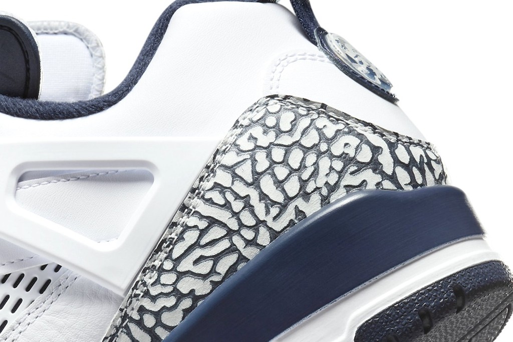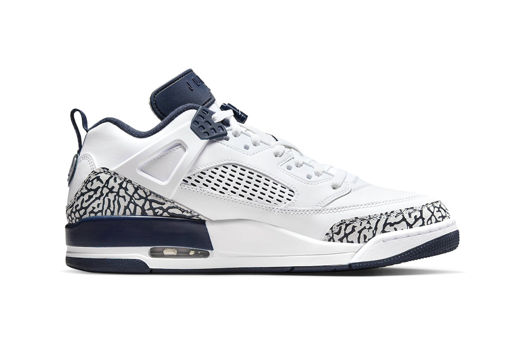 今年鞋圈一大惊喜就是迎来了 Jordan Spizike 系列的回归。 作为 Jordan 旗下最具人气的 “融合鞋”,外观不光不违和,上脚效果还是一流。 近日,一双黑曜石配色 Jordan Spizike Low 曝光。 整体以白色为主基调,细节房间融入午夜蓝,百搭又耐看。 再结合经典爆裂纹设计,想必无论搭配长裤还是短裤都能有不错的表现。 据悉,全新 Jordan Spizike Low “Obsidian” 将于 6 月登场。