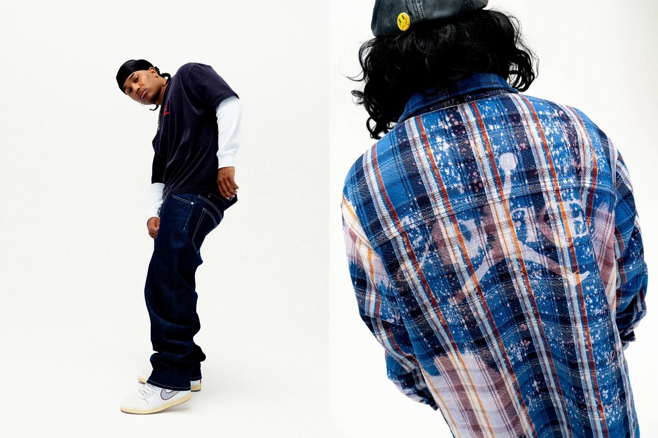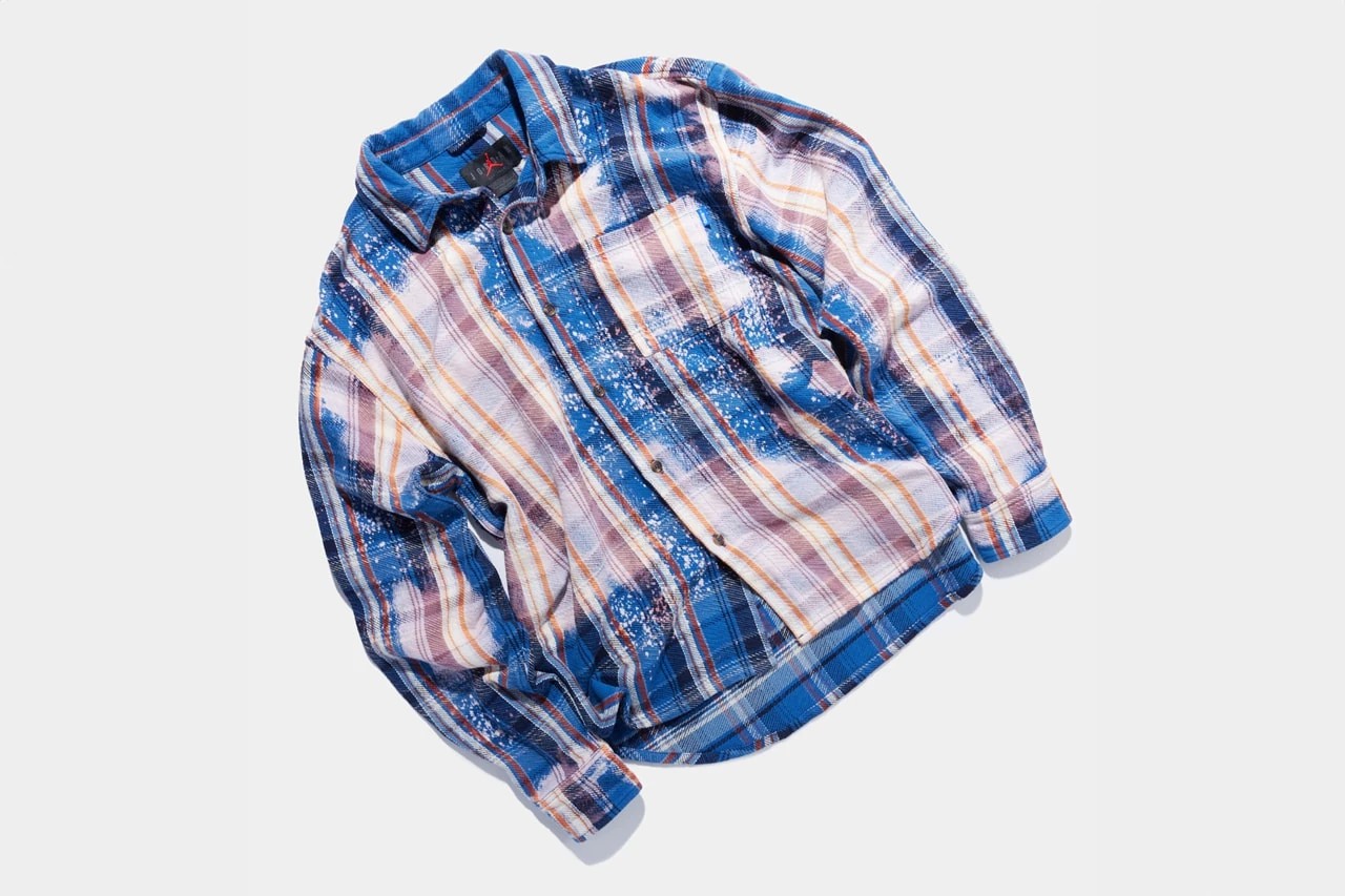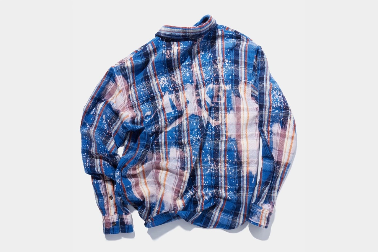 法兰绒衬衫呈现出不规律的水洗褪色效果,这件个性单品想必在街头有不低回头率。