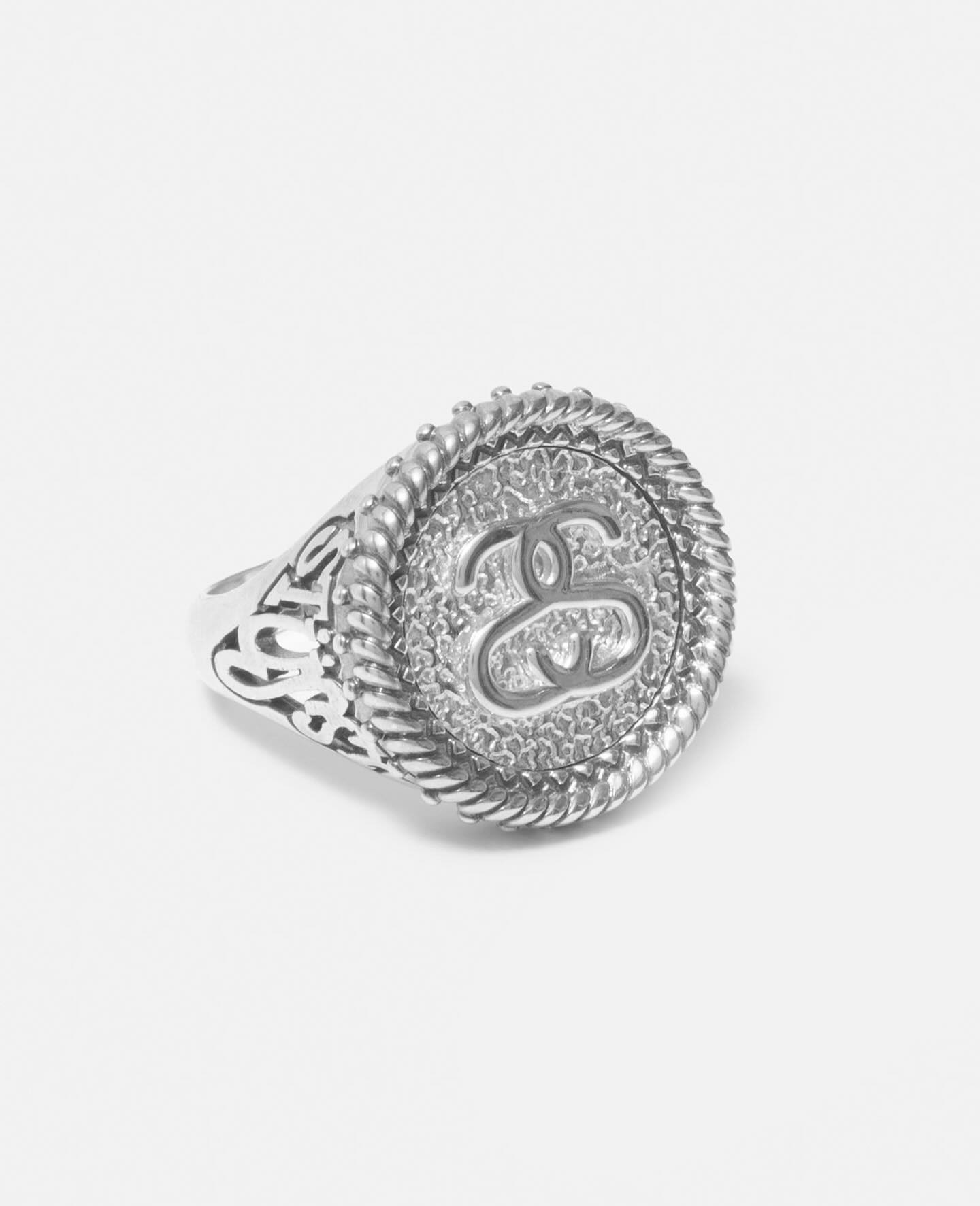 戒指正面则是双 S Logo,侧面可以看到 Stüssy 字样,并呈现出镂空效果。