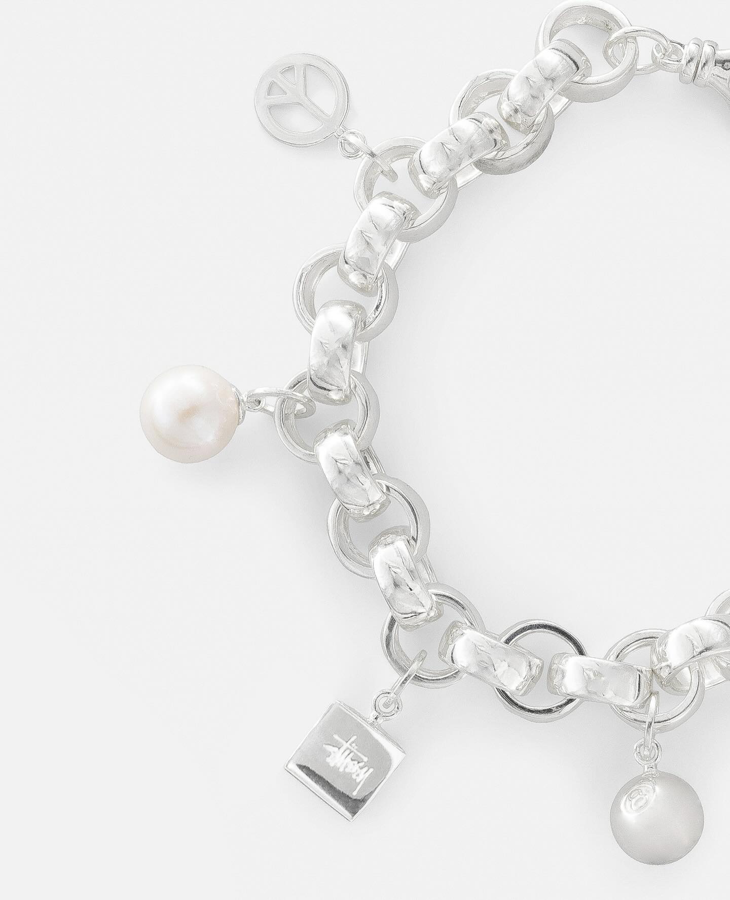手链上的 Stüssy 元素则更丰富,像是反战 Logo、骰子和黑 8 造型的吊坠都有出现。