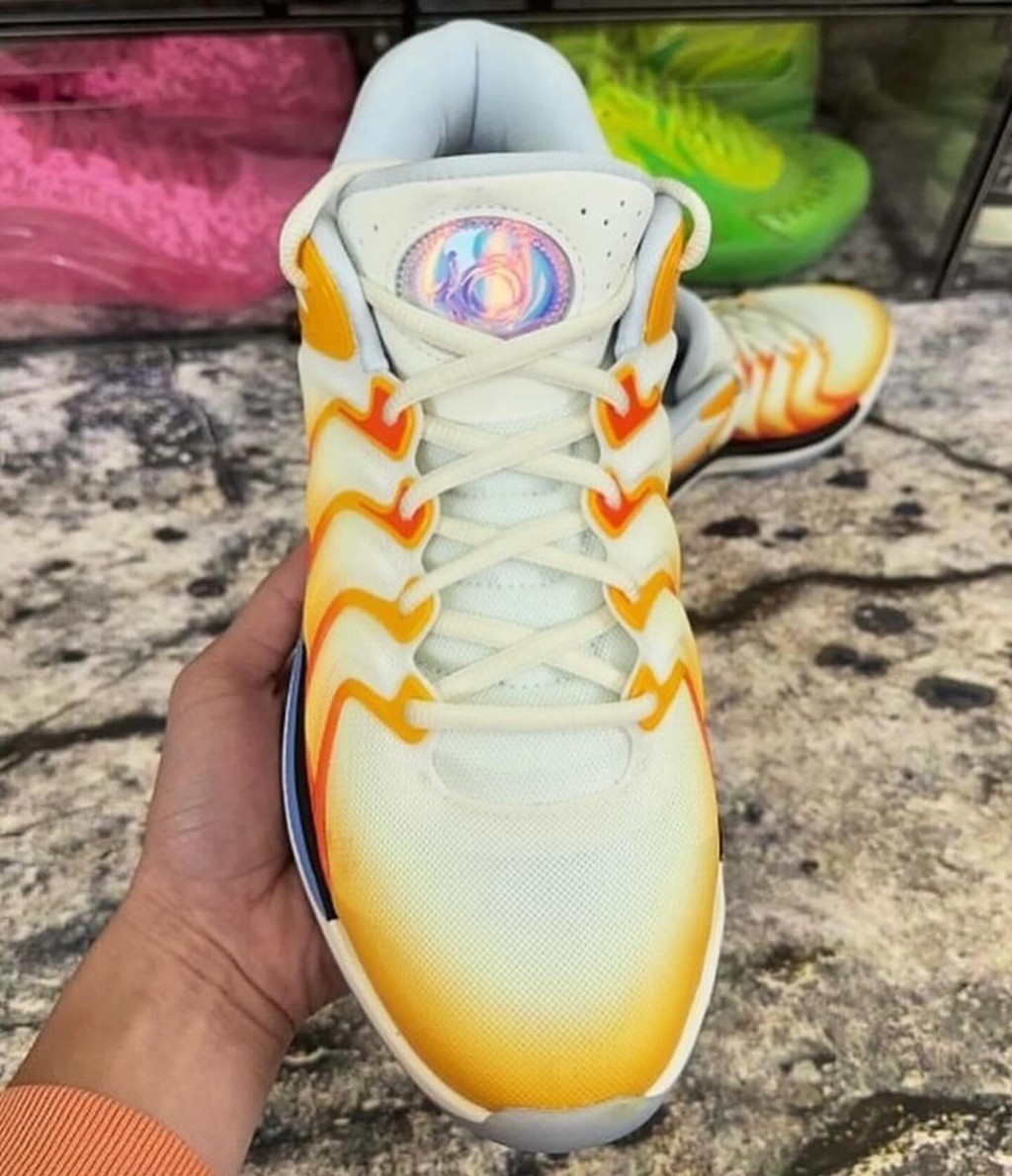 首先是鞋舌,采用类似 3D 效果的炫彩设计,整体科技感相当浓郁。
