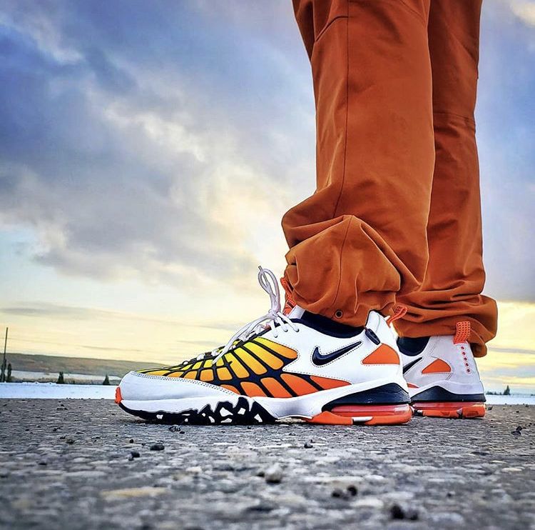可视作 Nike 风派系列的巅峰之作,将发泡材质的超强可塑性与犀利色调完美融合,独树一帜的速度感鞋身肌理,哪怕现在看,依旧有种超现实的感觉。