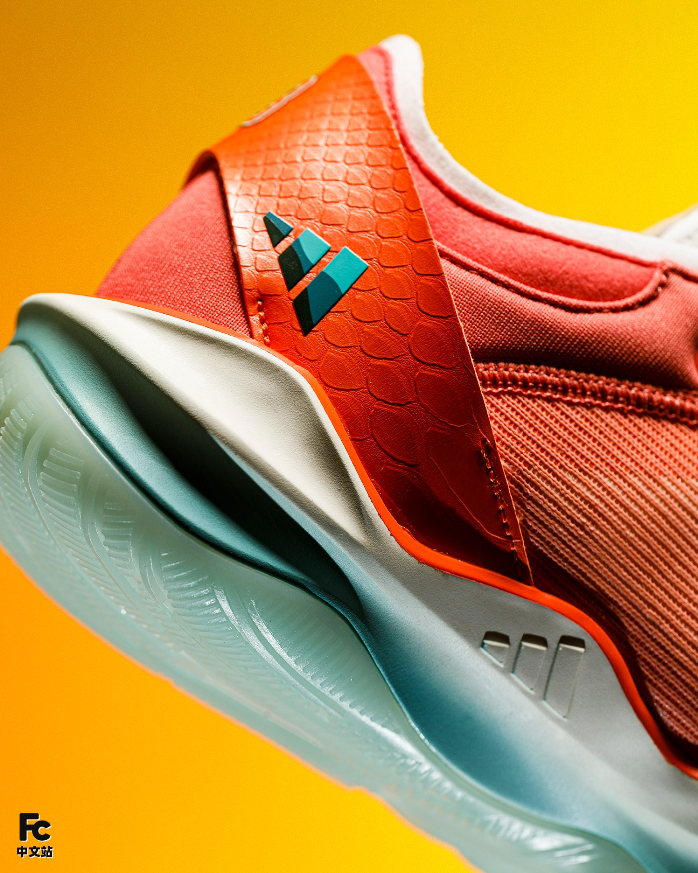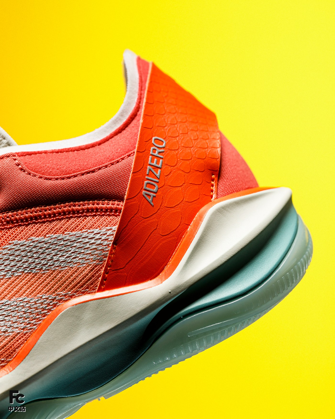 后跟位置分别放置 adidas Logo 以及 ADIZERO 字样,正后方则是胡明轩球衣号码数字 3。