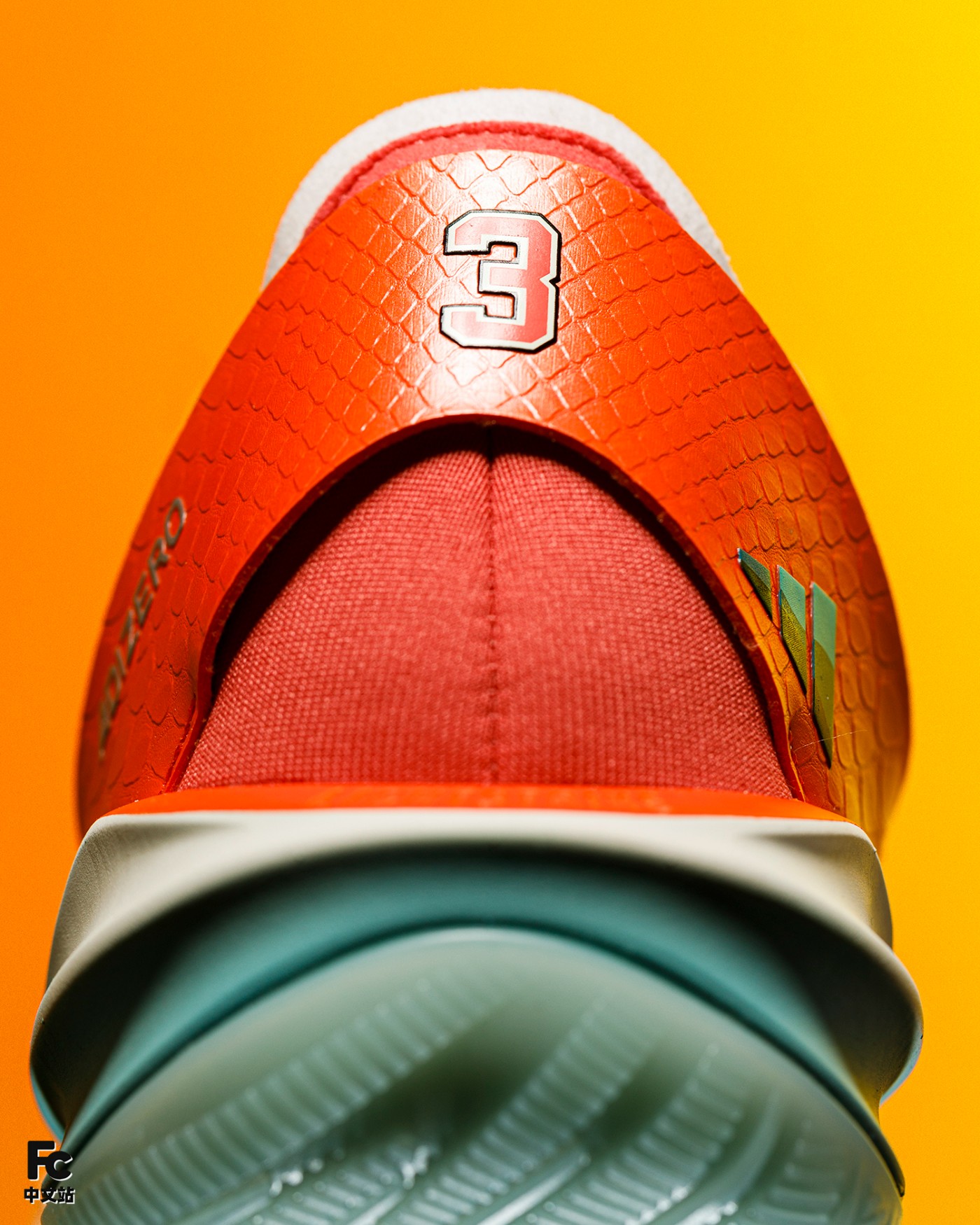 配色灵感来自中国传统贴画「鲤鱼跃龙门」,将富有东方韵味的设计与胡明轩的个人元素融入鞋款。