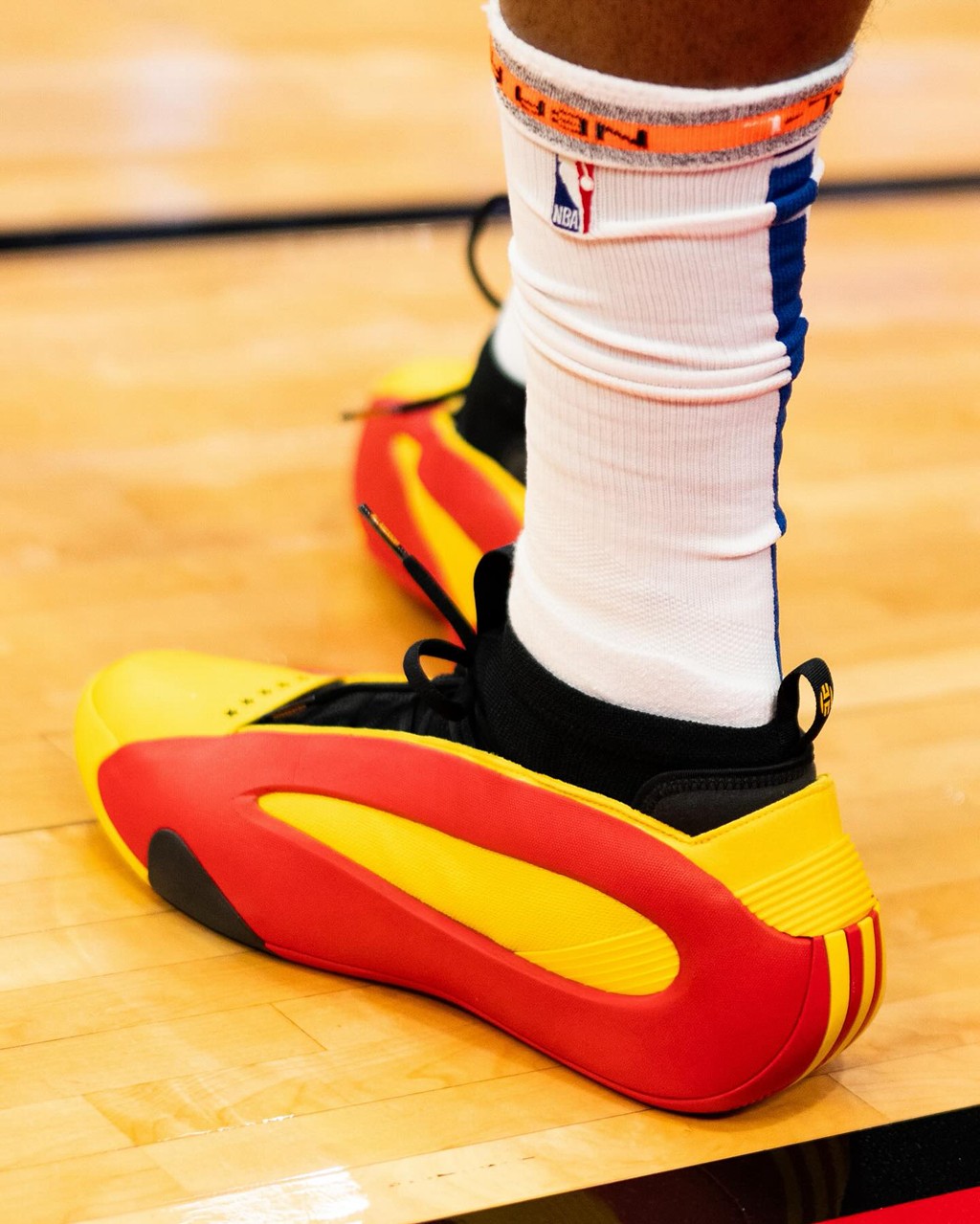 直到今天,哈登依旧会时不时地上脚一双新配色给大家提前看看,就比如最近上脚的这双「麦当劳」配色。
