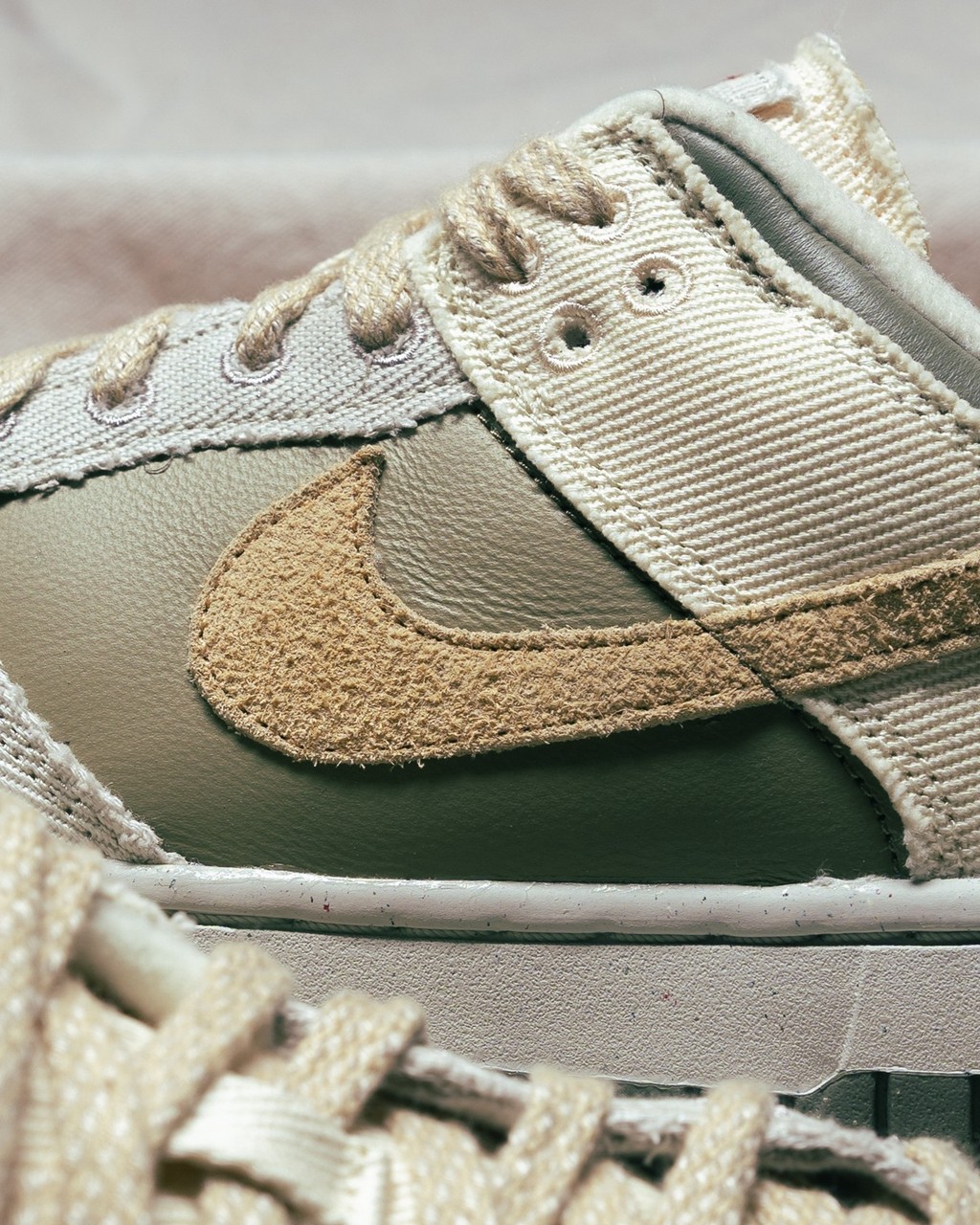 近日,全新配色 Nike Dunk Low 登场,看似平平无奇,但实则充满亮点。 配色就不用多说了,清爽的米色系百搭又耐看,几乎适配任何穿搭。 亮点在于鞋后跟处,利用补丁的手法呈现 Swoosh 造型,给人十足的新鲜感。 材质方面,鞋面运用皮革、麂皮、麻布拼接打造,质感层次相当到位。 目前,这双 Nike Dunk Low 已经登场,感兴趣的玩家不妨关注。 Pic via:sneakerpolitics