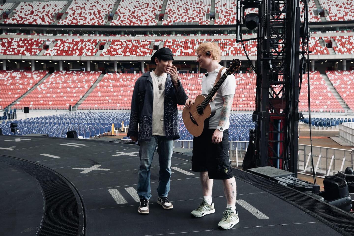 现身新加坡与英国歌手 Ed Sheeran 同框时,则搭配了 19 年登场的「高帮倒钩」TS x AJ1,现在不少男码已经过万了!