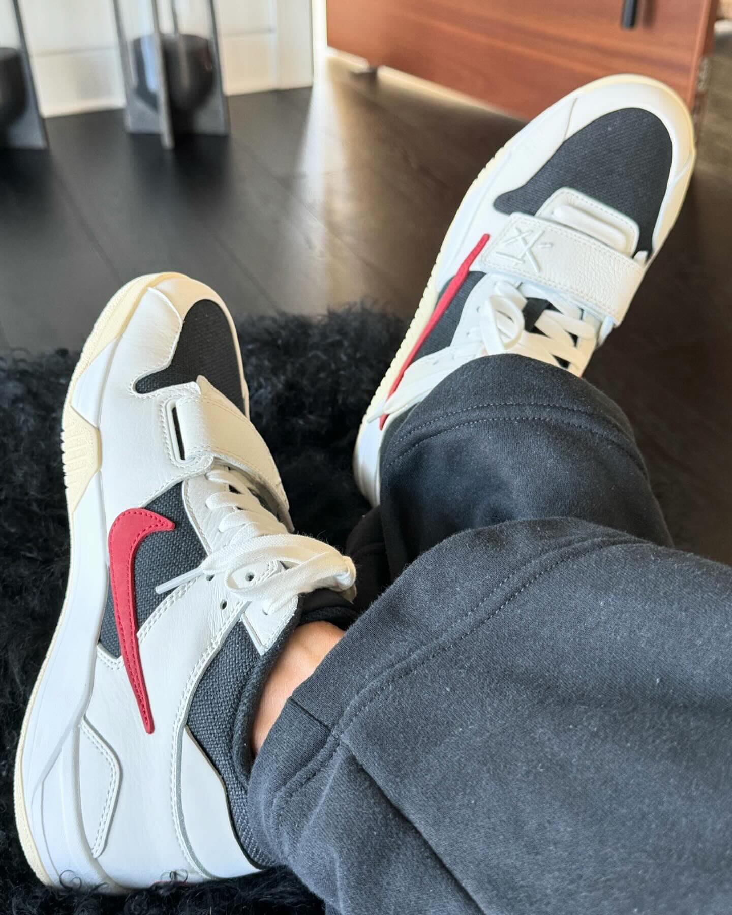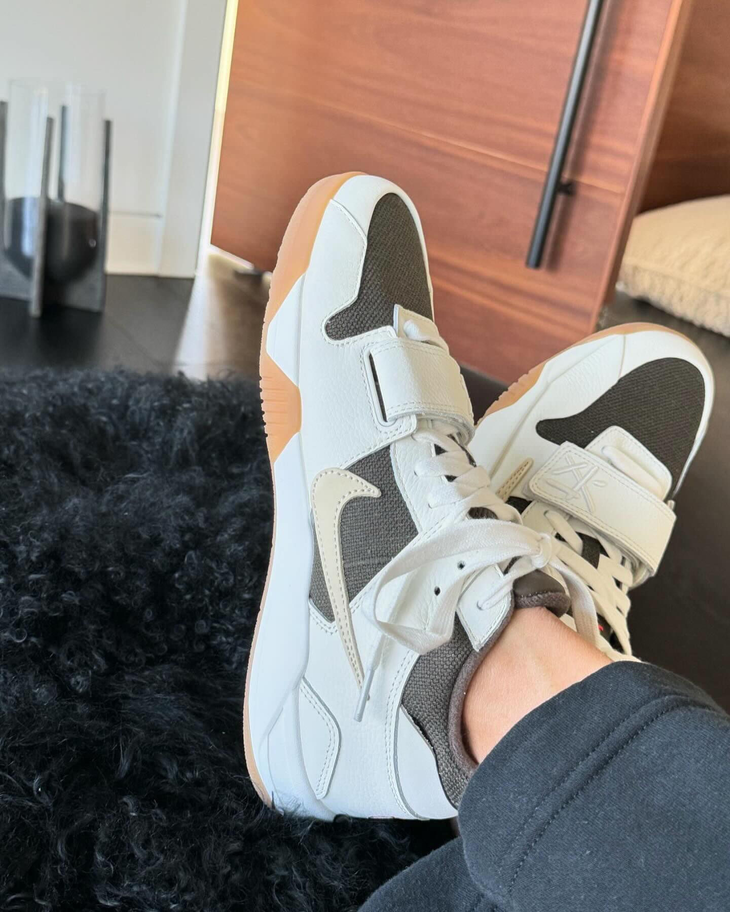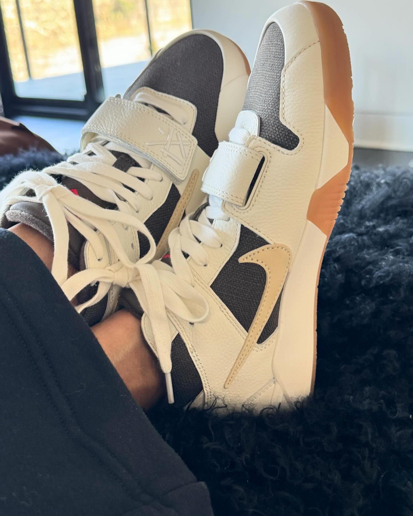 Travis Scott 同 Jordan 打造的这双新鞋都为其配备了绑带设计,估计是为了在演唱会蹦迪的时候不容易松脱。