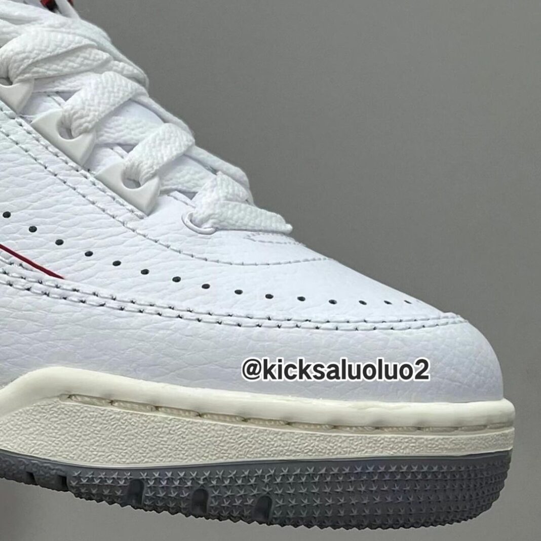 配色方面选择了经典的白红装扮,中底略带氧化效果,复古气质浓郁。