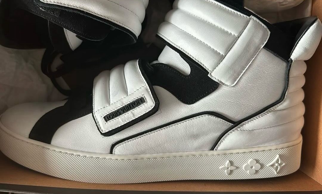 鞋型采用 2009 年 Ye 和 LV 合作时打造的 Louis Vuitton Jasper,Kid Cudi 登上 Complex 杂志封面时曾上脚。