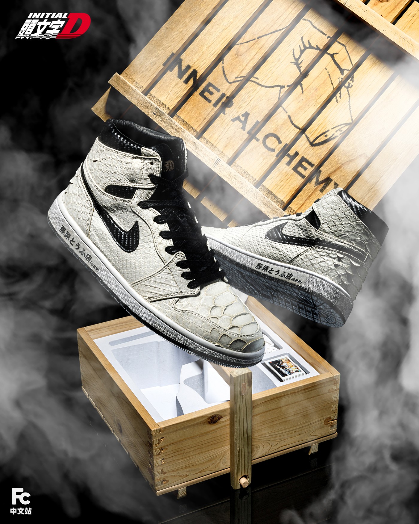 此次这双鞋出自国内顶级球鞋定制团队 Inner Alchemy「内在炼金术」,以 AE86 升级「赛车专用引擎」这一经典剧情桥段为灵感。