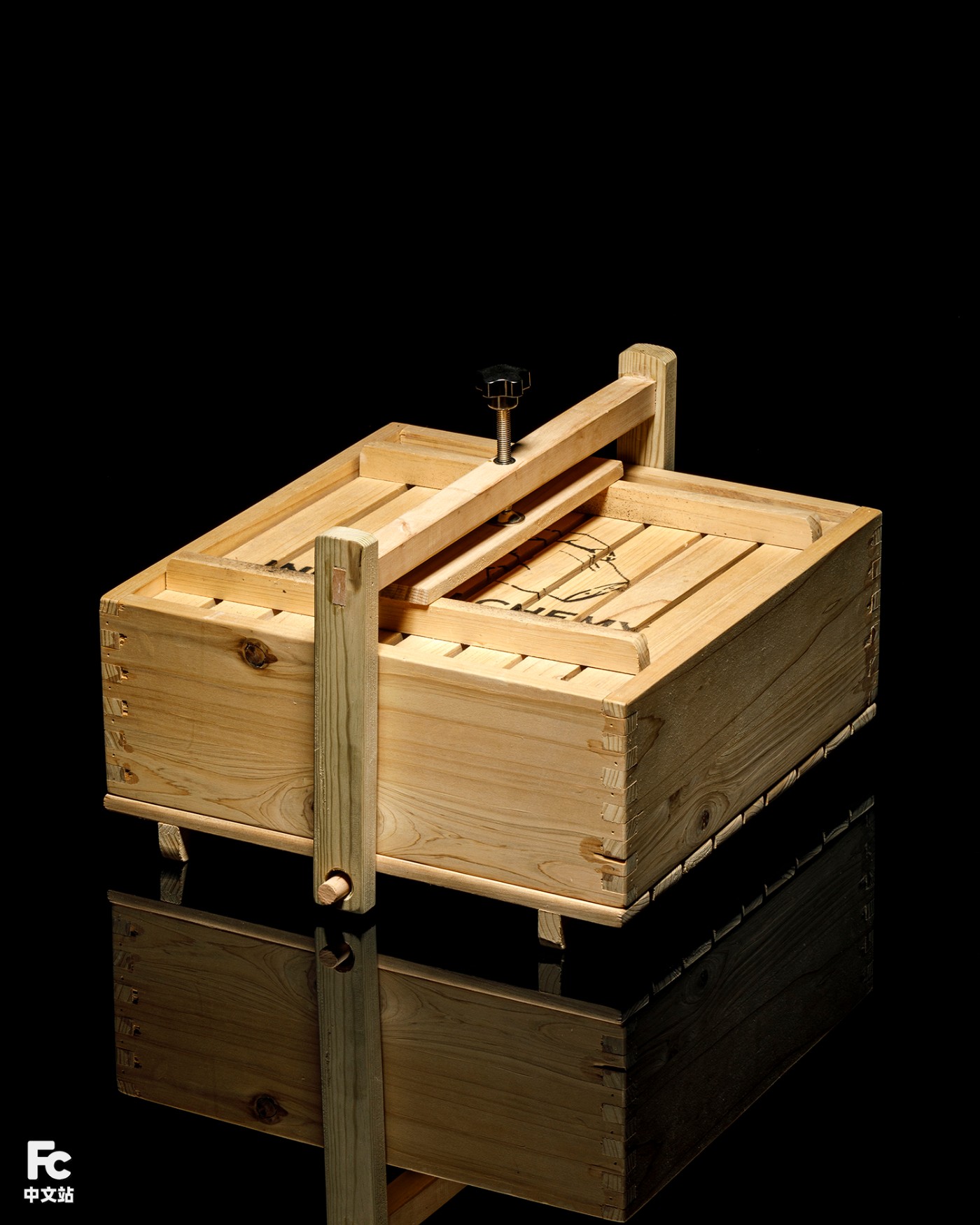 整个木质包装专门请师傅根据真实制作豆腐的磨具打造。