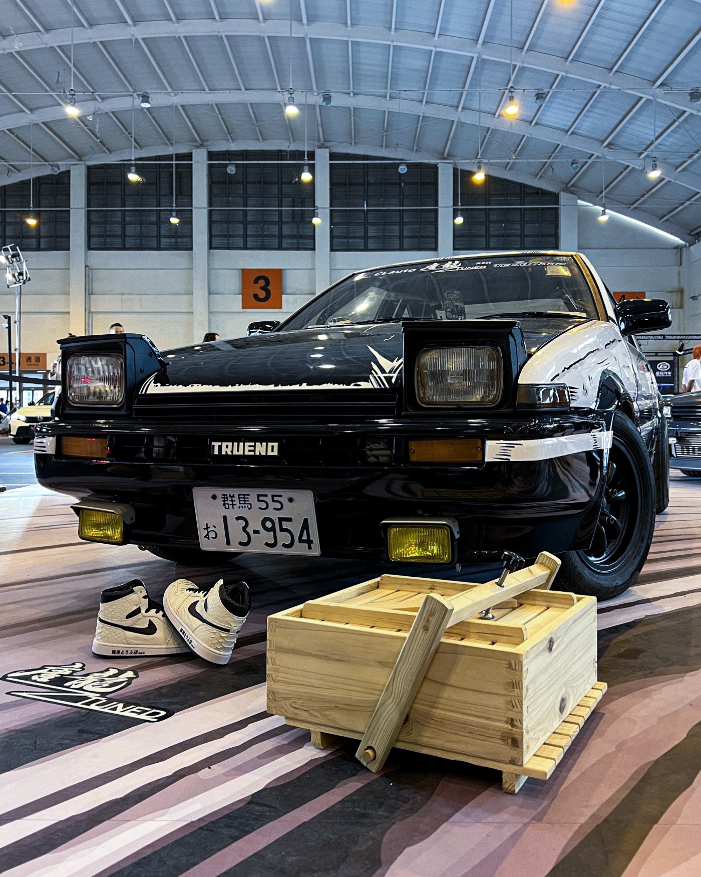 包含有特别定制的白色鞋垫和鞋带、86 字样的 24K 镀金项链,以及汽车收藏家李贵华先生所收藏的 AE86 实车拍立得照片。
