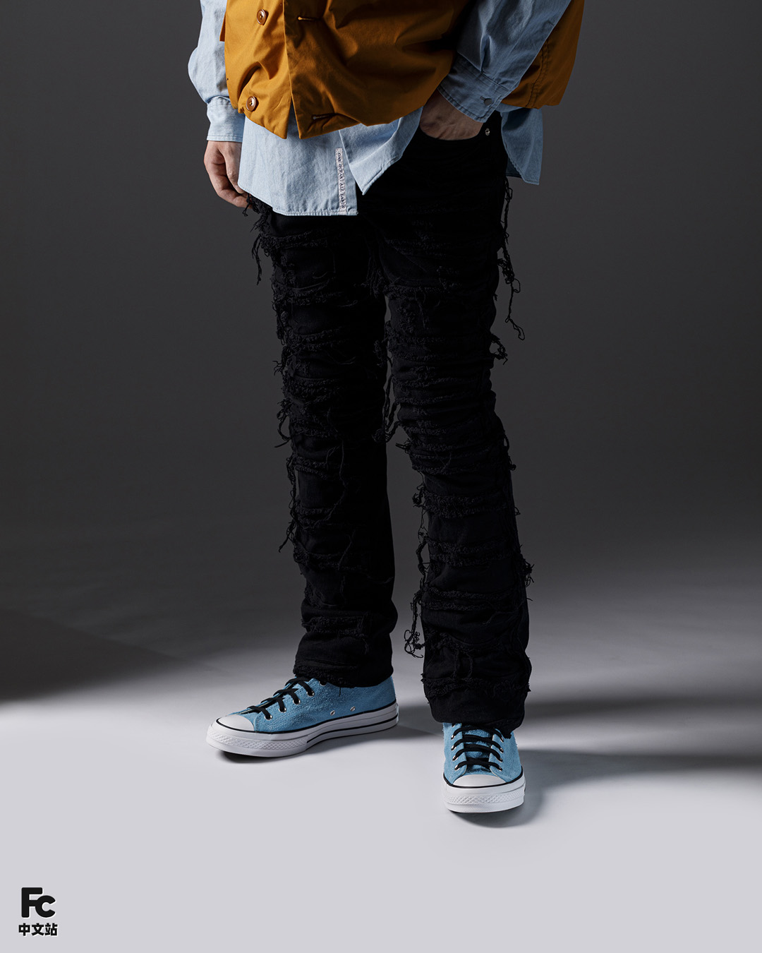 上脚方面,得益于 Chuck 70 经典的鞋型,裤型这方面完全不挑剔,唯一需要注意的就是服饰配色不能太花哨,尽量选择黑、白、灰或者同色系搭配。