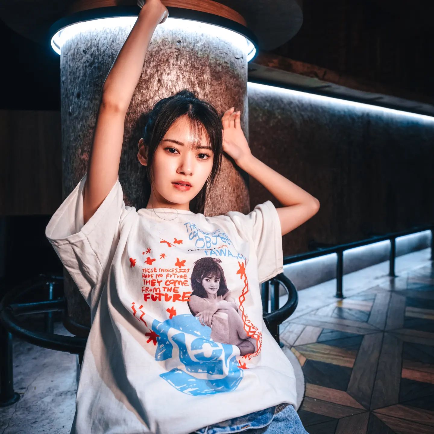 这次则是邀请凉森玲梦与八掛海一同创作限定胶囊系列 CLOT x fAWA©️ x PRESTIGE APPAREL,共带来两件印花、色调不同的白色 T 恤。